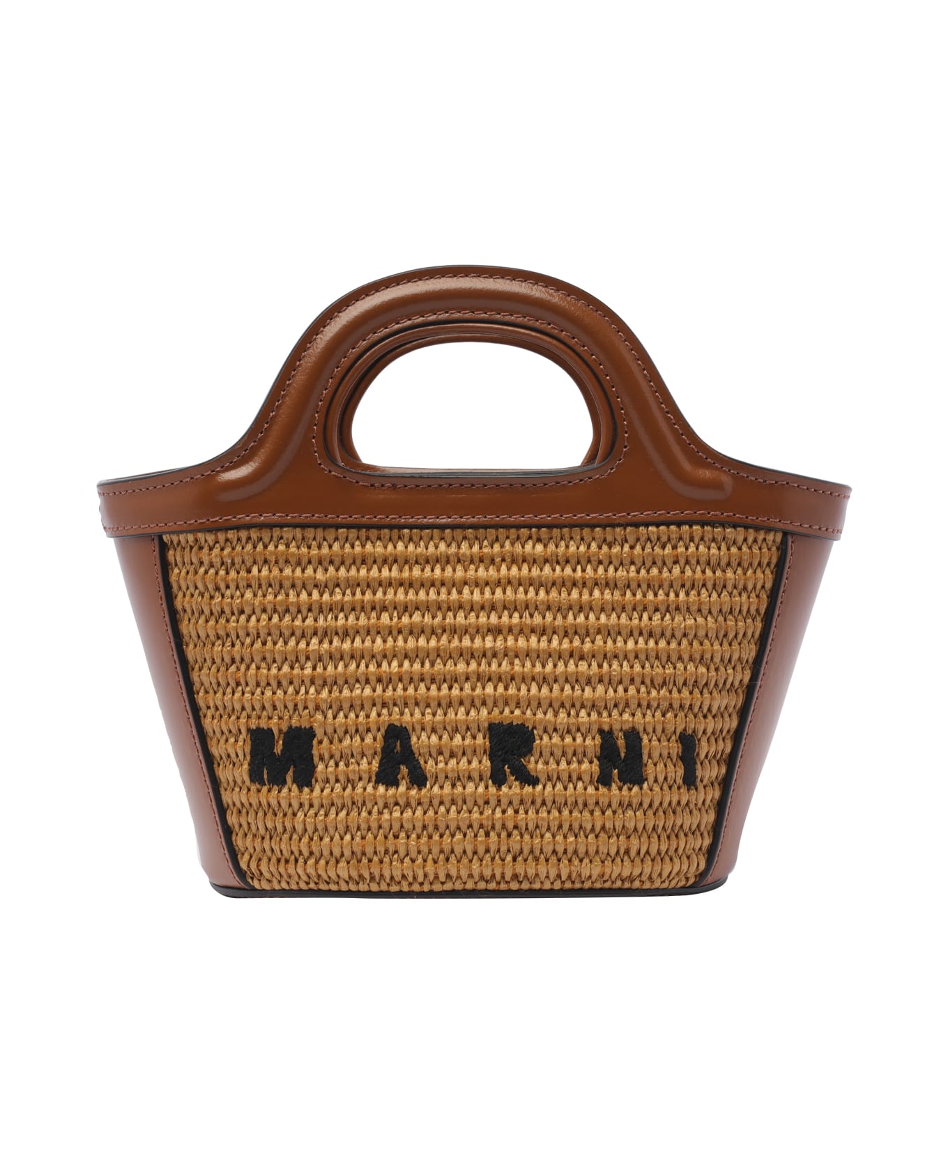 Marni brown micro Tropicalia handbag, laces closure, adjustable and removable shoulder strap, 2 handles, frontal logo Composition: 52% Cotton, 48% Polyamide