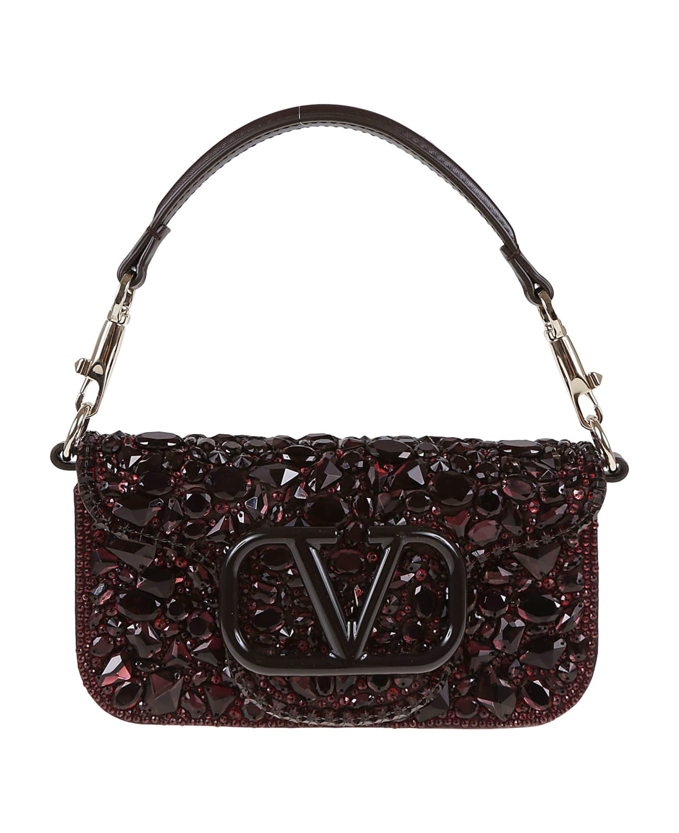 Locò shoulder bag in calfskin BY VALENTINO GARAVANI. Magnetic closure; a flat pocket inside. Characterized by VLogo Signature on the front, tone on tone. Detail covered in crystals. Ideal to be worn both on the shoulder/cross-body thanks to the sliding and removable chain; or by hand thanks to the handle which is also removable.