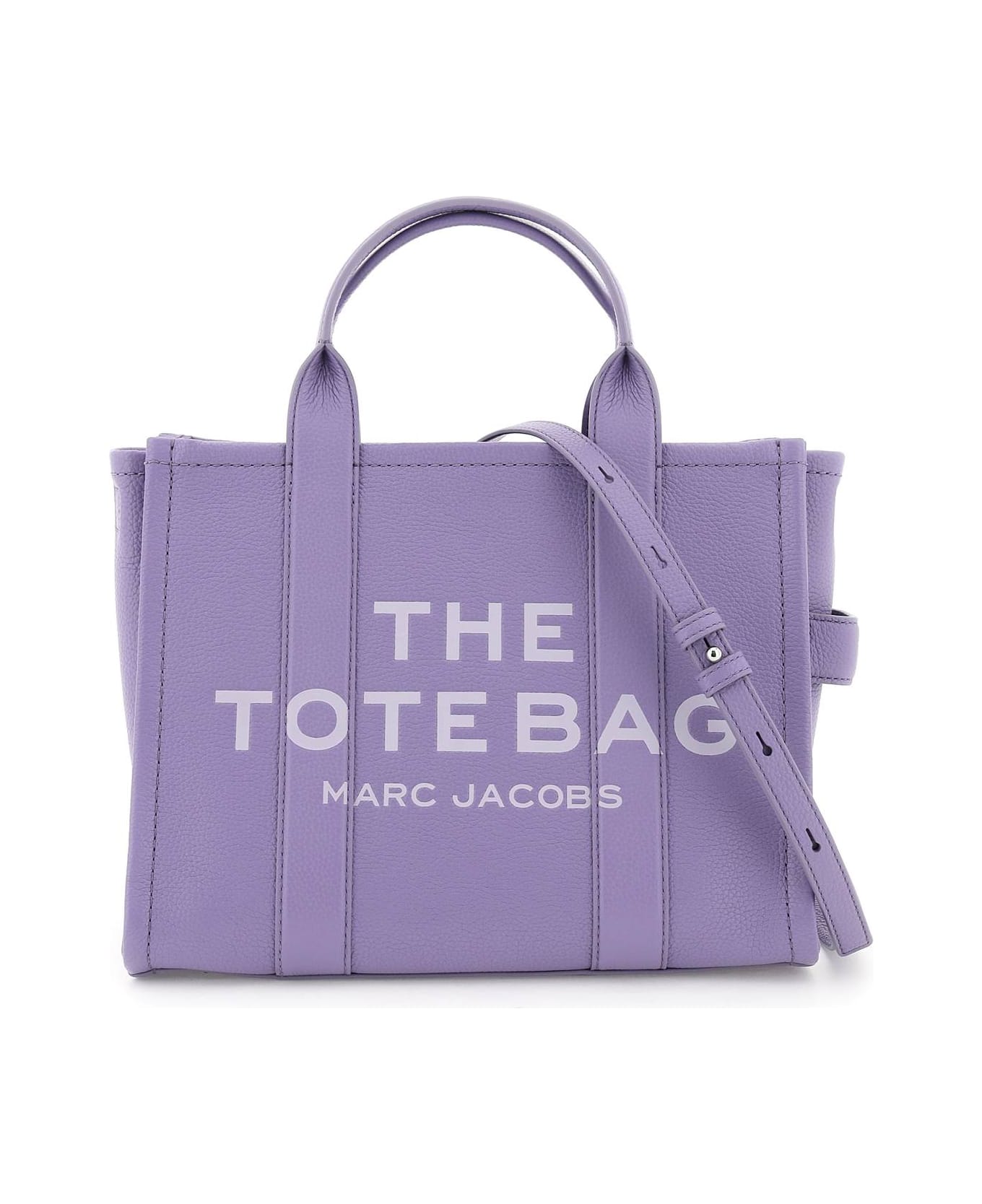 Marc Jacobs "The Leather Small Tote Bag"crafted in full grain leather with debossed logo print on front and leather logo patch applied on the back. Double top handle, detachable and adjustable shoulder strap, side handle and zip closure. Leather interior with a fabric insert featuring a zipped flat pocket, two open smaller ones and a leather credit card slot. Gold-finished metalware.