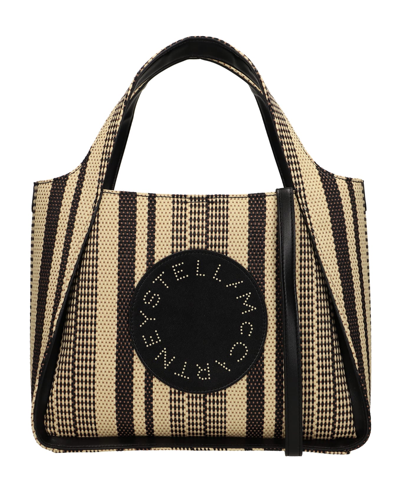 Tote in beige Silver, double handle, logo print on front, rafia fabric, Made in Italy, Height 240 mm, Width 315 mm