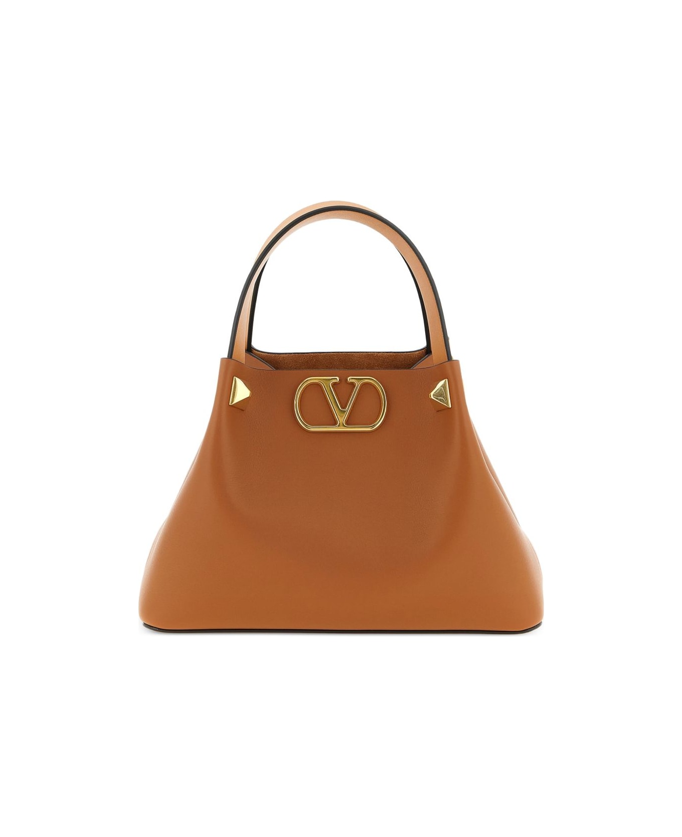 brown leather signature V-logo fixed handles adjustable and removable shoulder strap Composition: Calf Leather, 100%