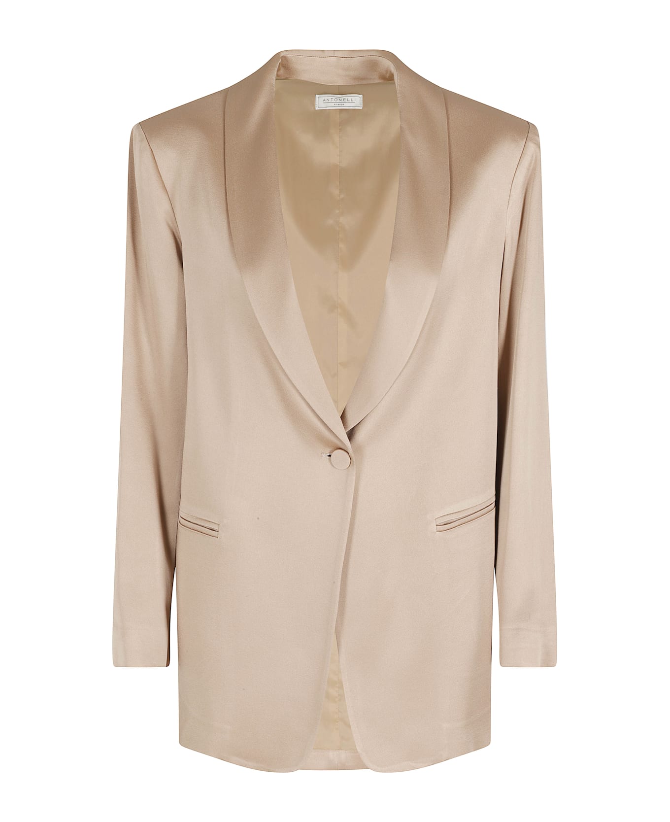 Category: Blazer Article: Edward Blazer Brand: Antonelli Color: Beige Neckline: Shawl lapels Pockets: Side welt Closure: Single breasted with button SIZE AND FIT Fit: Regular Sleeve: Long