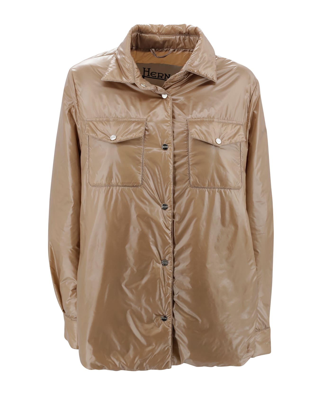 Padded jacket-shirt, front button placket closure, two flap pockets on chest, cuffs with button placket, classic collar. Composition: 100% Poliamide