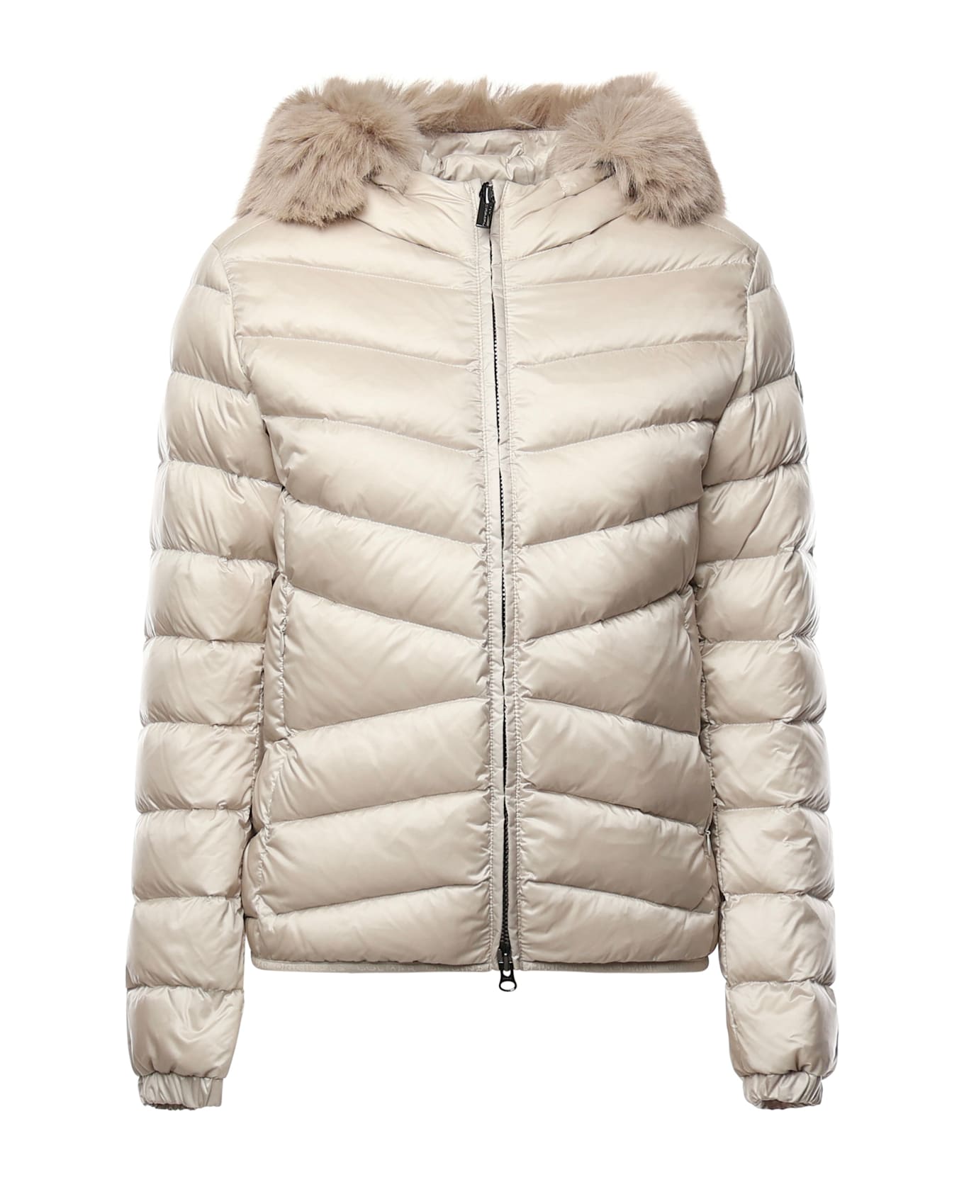 Quilted Down Jacket With Faux Fur