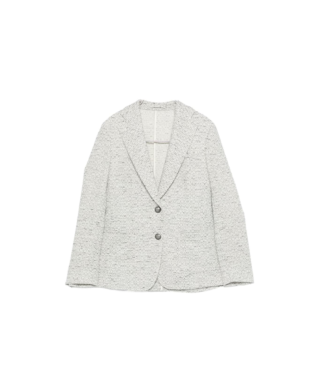white/grey button fastening long sleeves buttoned cuffs notched lapels front pockets