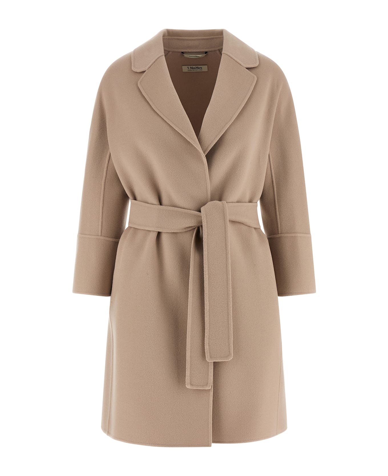 'Arona' coat in double drap of pure wool sewn by hand, cocoon silhouette, robe style, pockets, kimono sleeves on the front and raglan on the back, unlined, removable belt. Composition: 100% virgin wool