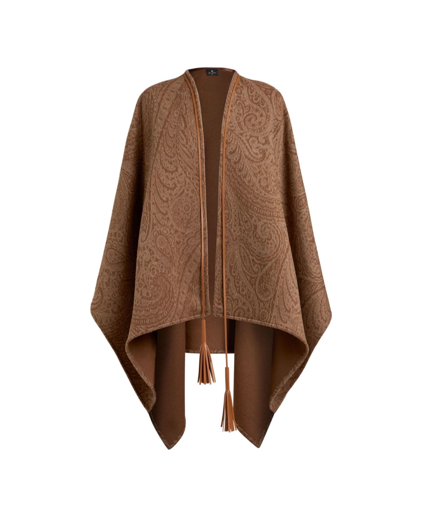 ETRO Paisley Print Cape Origin: Italy Features Brown Paisley pattern Front lace closure Asymmetrical hem Tassel detail Composition 92% wool, 83% polyurethane, 12% polyester, 7% cashmere, 5% viscose, 1% polyamide