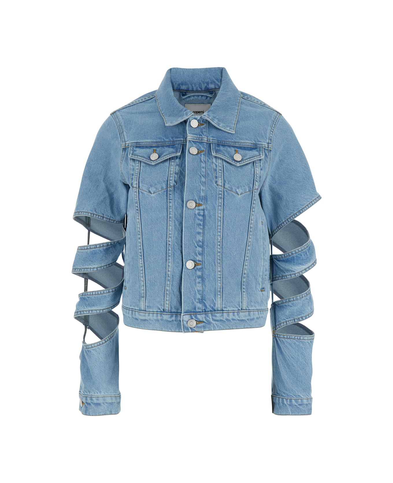 Jacket Light blue Classic collar Spiral cut-out sleeves Front button closure Two front patch flap pockets Logo patch on the back Buttoned cuffs Straight hem Denim Regular fit