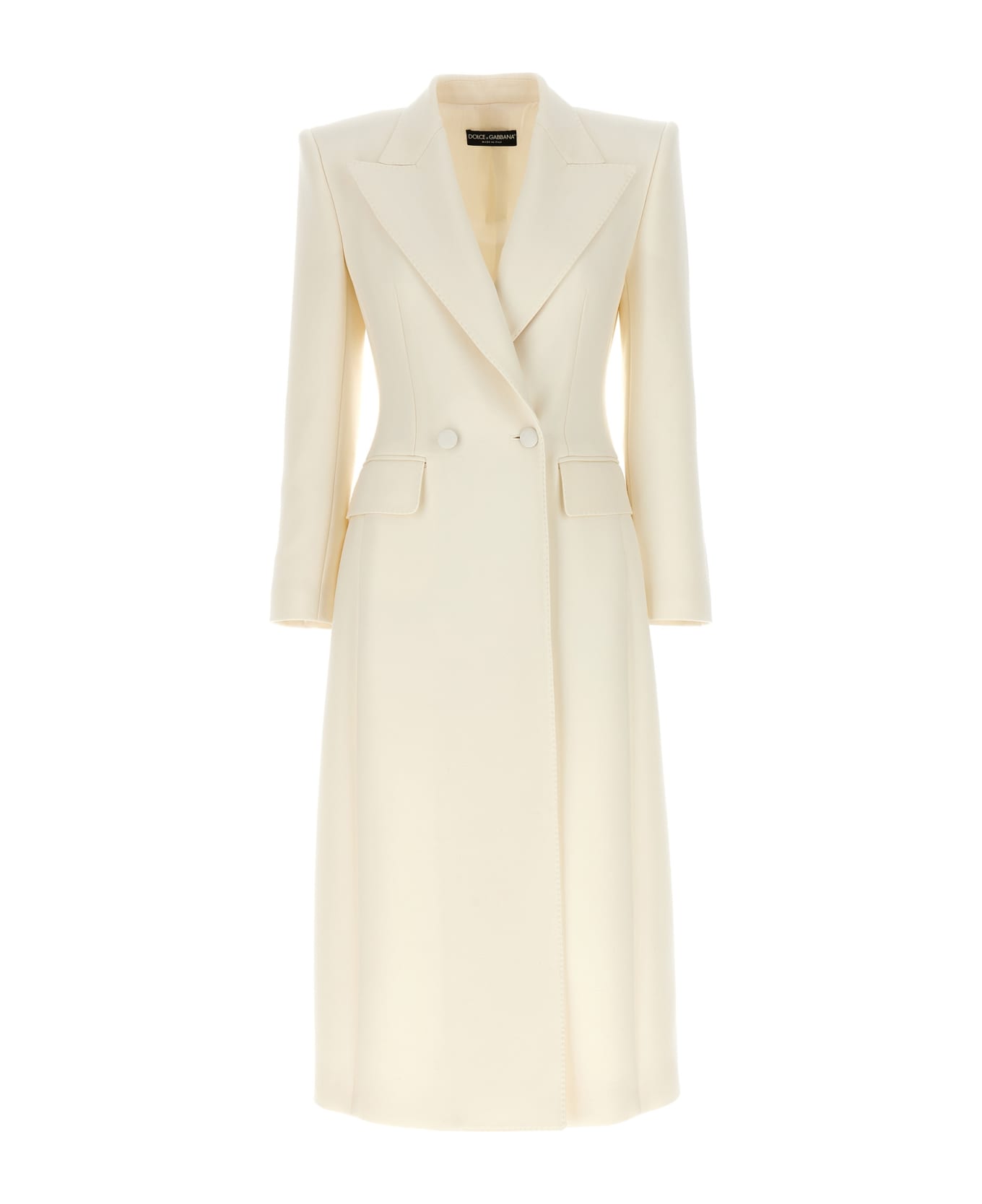 Long double-breasted wool coat with accentuated waist, button closure, and pockets. Composition: 90% virgin wool 10% polyamide