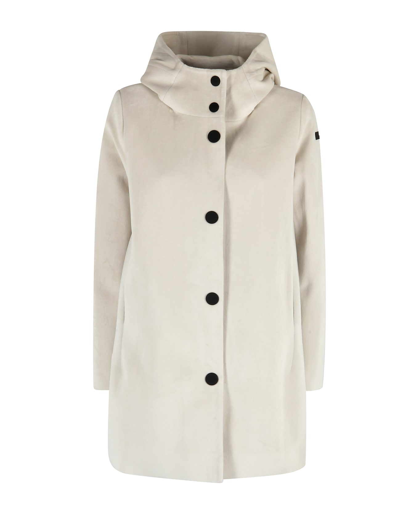 Velour Neo Parka coat - RRD - Cream color - Velour fabric - Hood - Flush side pockets - Front button closure