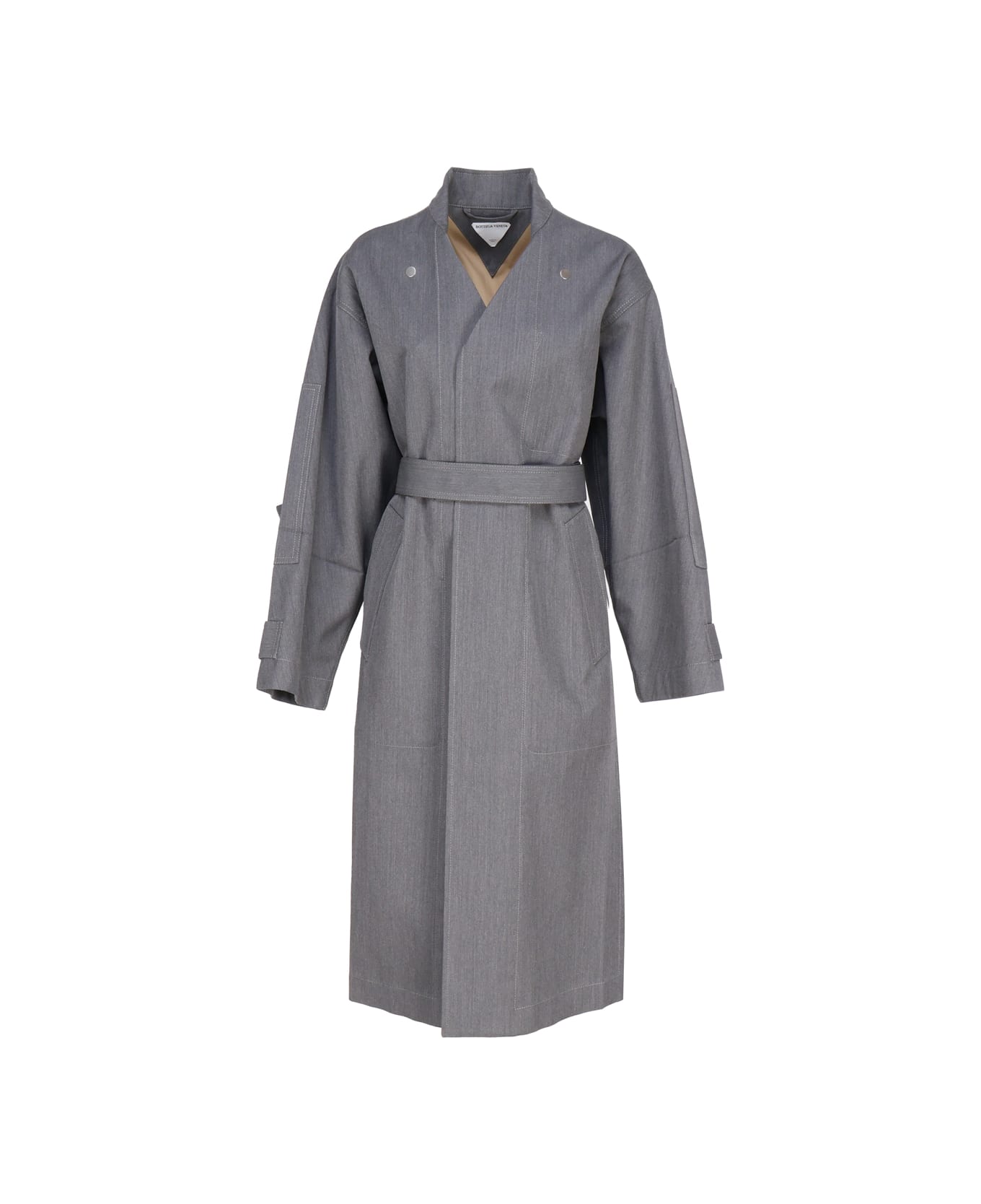 Charcoal/cane sugar Parka In Bonded Wool And Cotton from Bottega Veneta -Two-tone parka in bonded wool and cotton -Belt in the same fabric -Closure with automatic buttons -Relaxed fit -Made in Italy -Colour: Charcoal/Cane sugar -54% Wool, 46% Cotton
