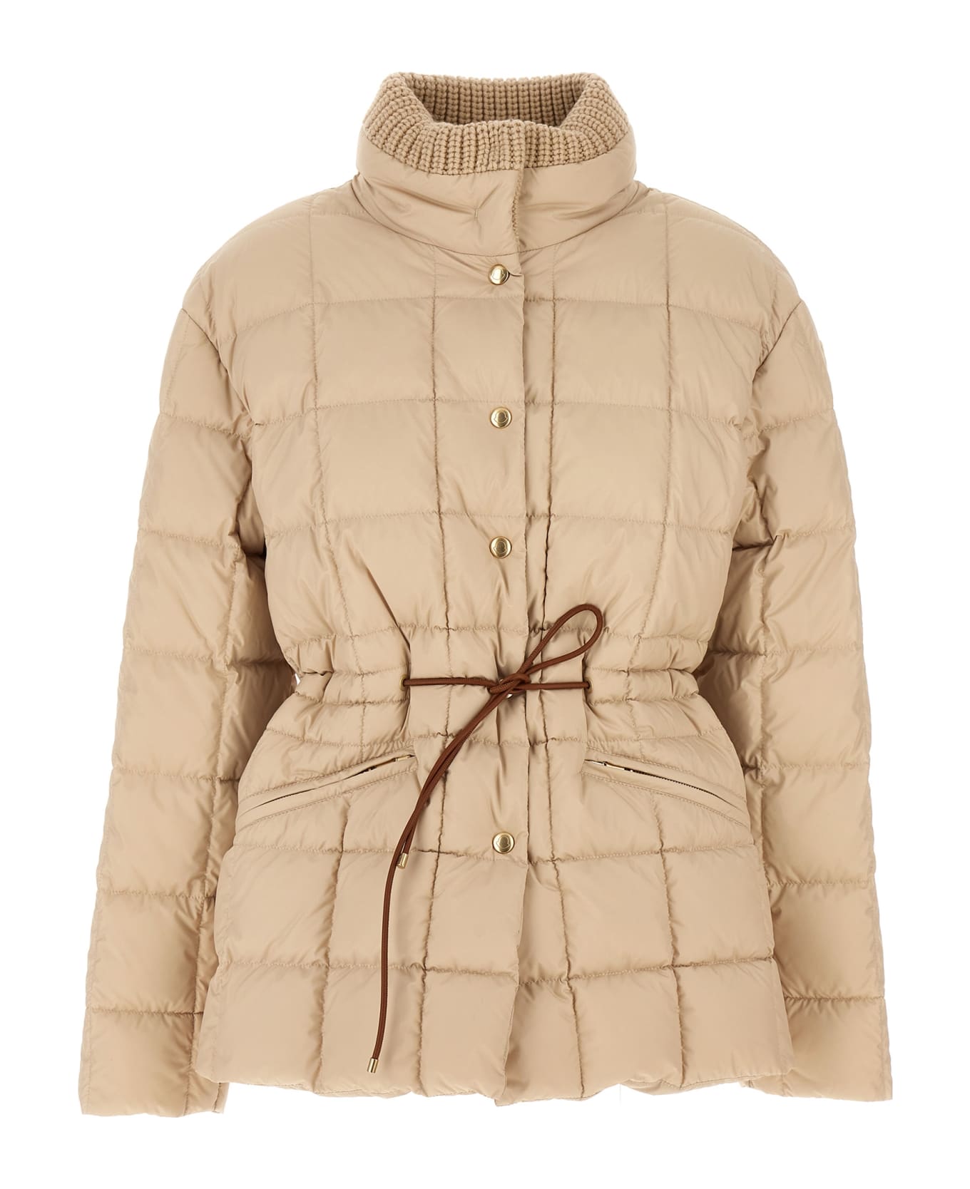 'Antigone' padded nylon down jacket, button closure, leather drawstring at the waist, pockets, long sleeves.