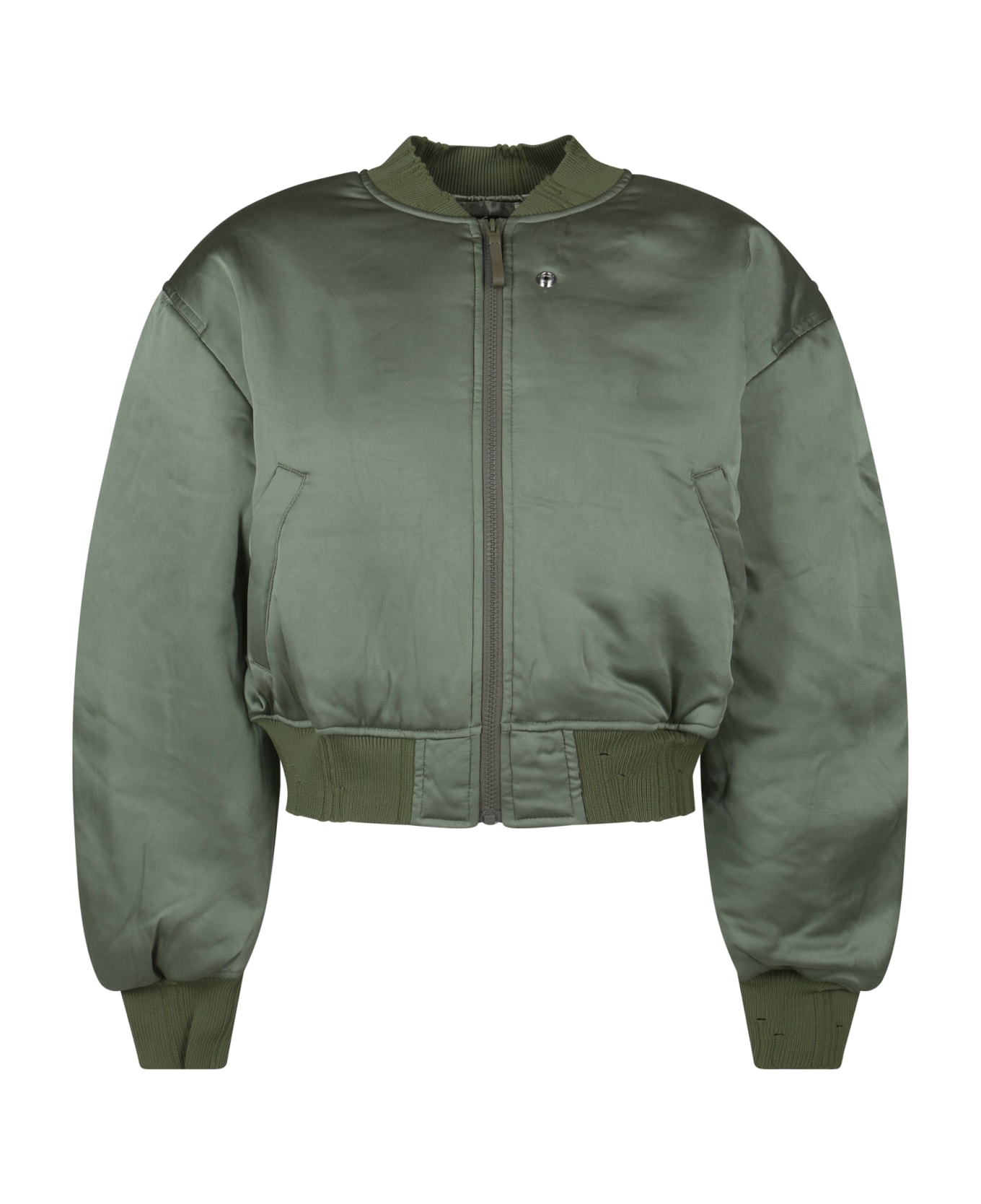 Bomber jacket by acne studios, ribbed high collar, front zipper closure, two side welt pockets, ribbed cuffs, iconic brand monogram embroidered on back, ribbed hem, regular fit.