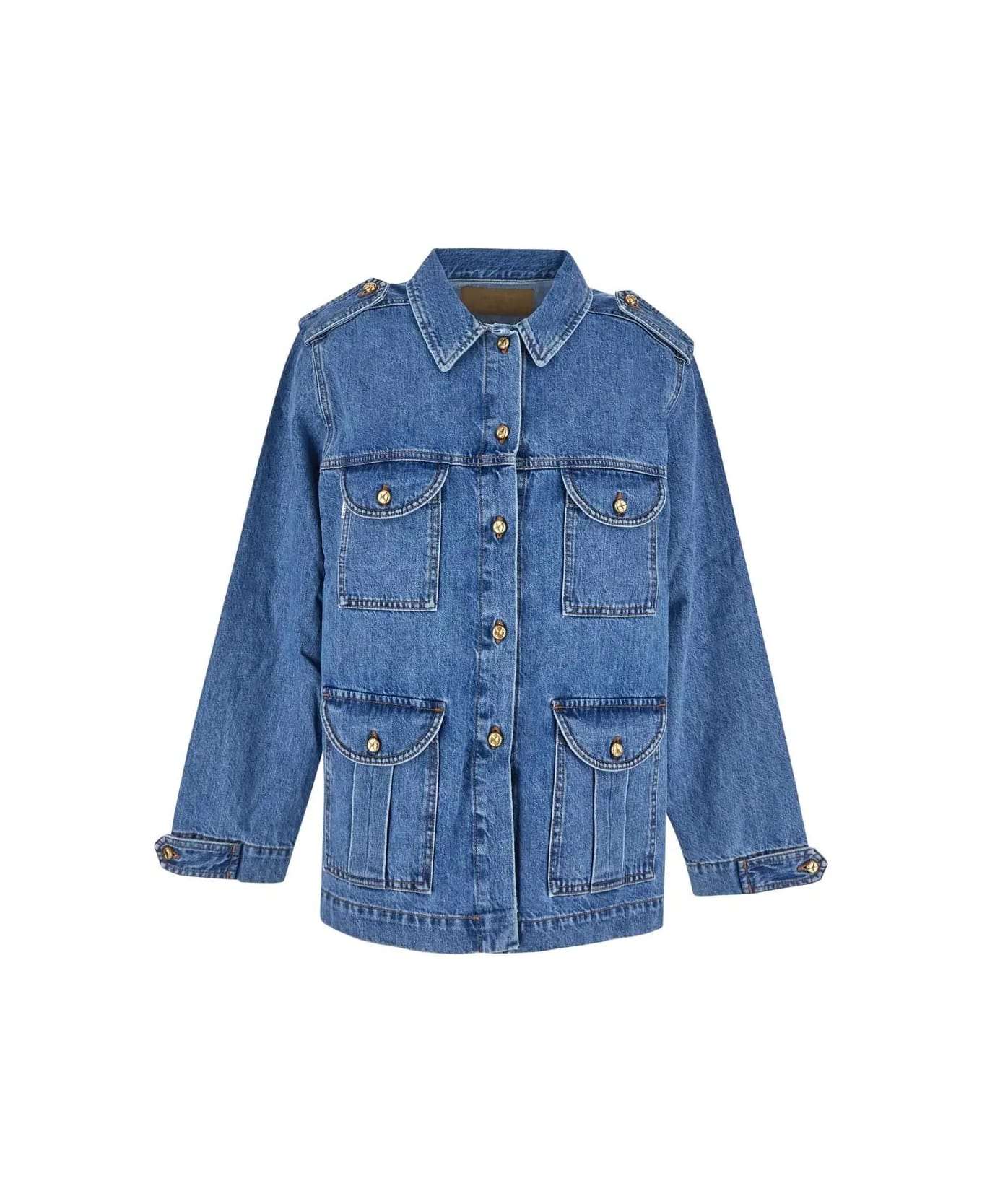 Blazè jacket in denim with golden buttons closure, four pockets, logo label and relaxed fit.