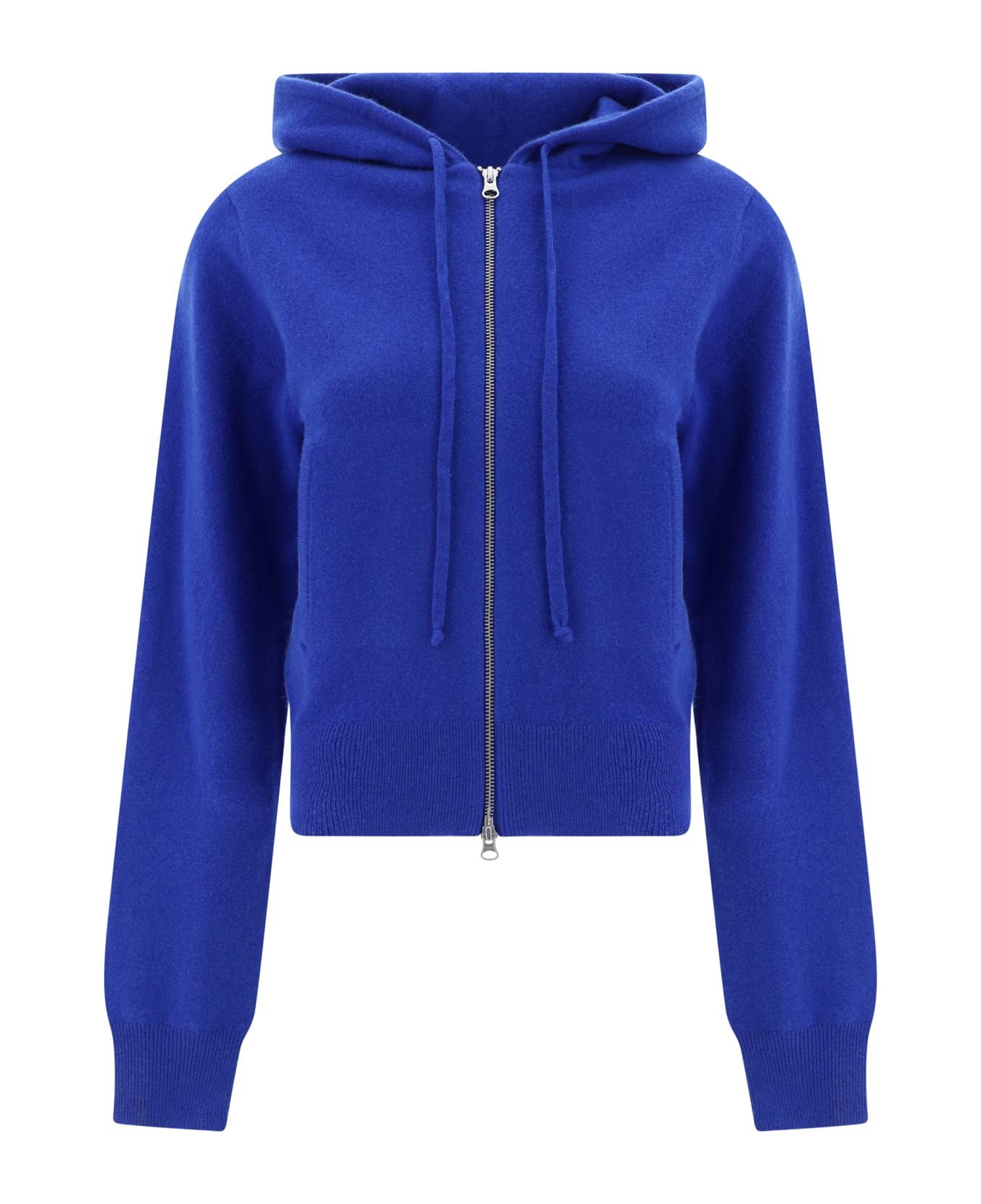 Cashmere hoodie by extreme cashmere, hooded design, front zipper closure, ribbed cuffs, monochrome design, ribbed hem, two side welt pockets, iconic brand logo embroidered on left sleeve, regular fit.