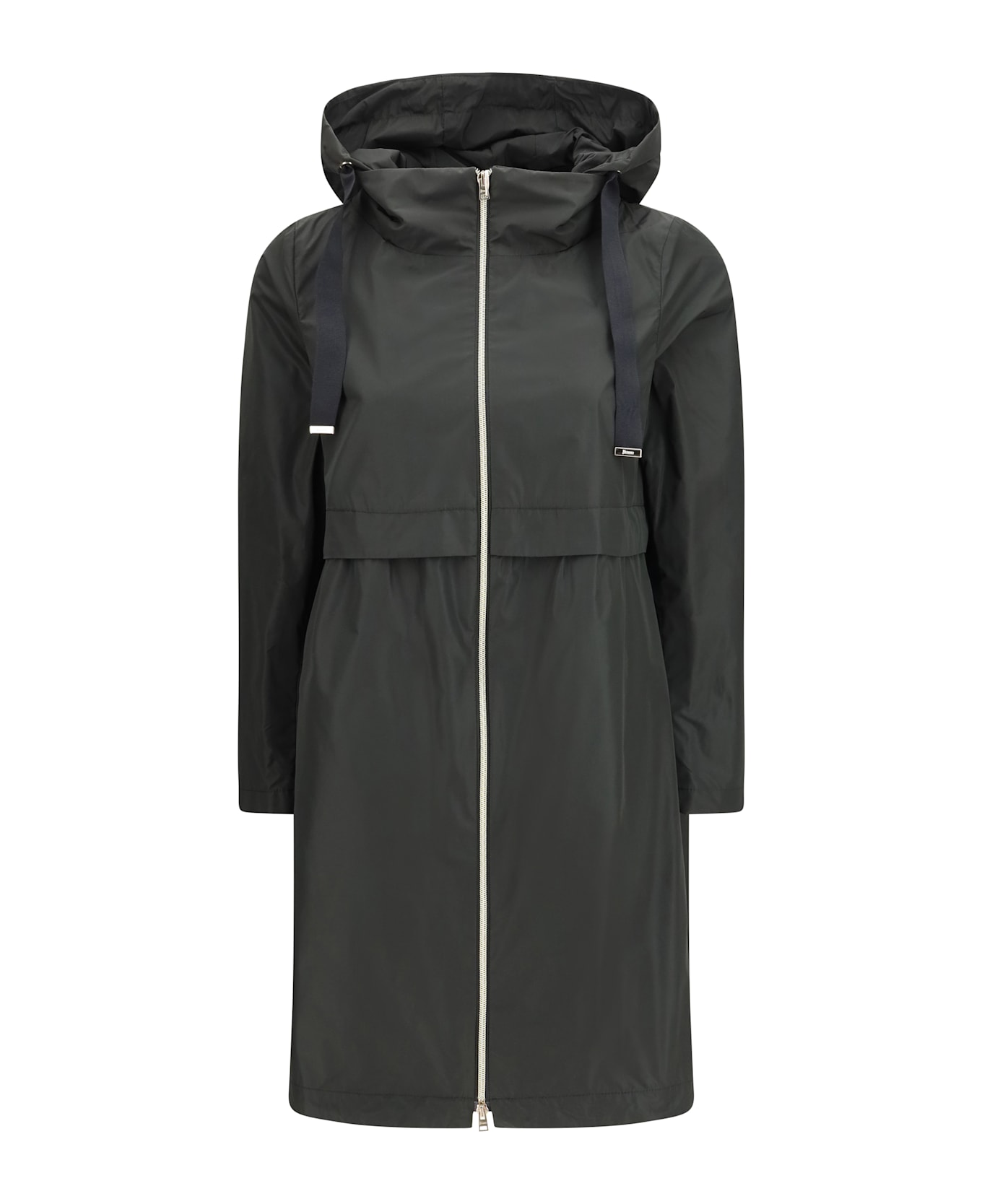 The long parka in new techno taffetà by herno blends functionality and refinement in a contemporary design. crafted from water-repellent techno taffeta with a subtle iridescent finish, it balances sporty appeal with understated elegance. the feminine a-line silhouette is enhanced by a rear inverted pleat, adding movement and structure. it features a removable hood with grosgrain drawstring, long sleeves, a two-way zip closure, and welt pockets. a versatile outerwear piece designed to adapt stylishly to changing weather conditions.