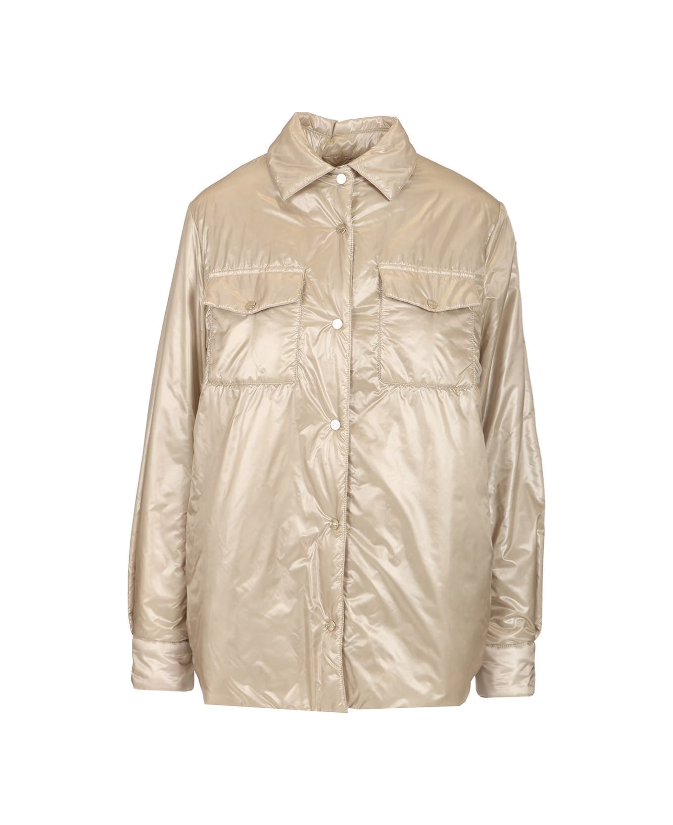 Lightly padded champagne beige nylon overshirt from Herno, with snap buttons, buttoned cuffs, chest pockets, straight cut.