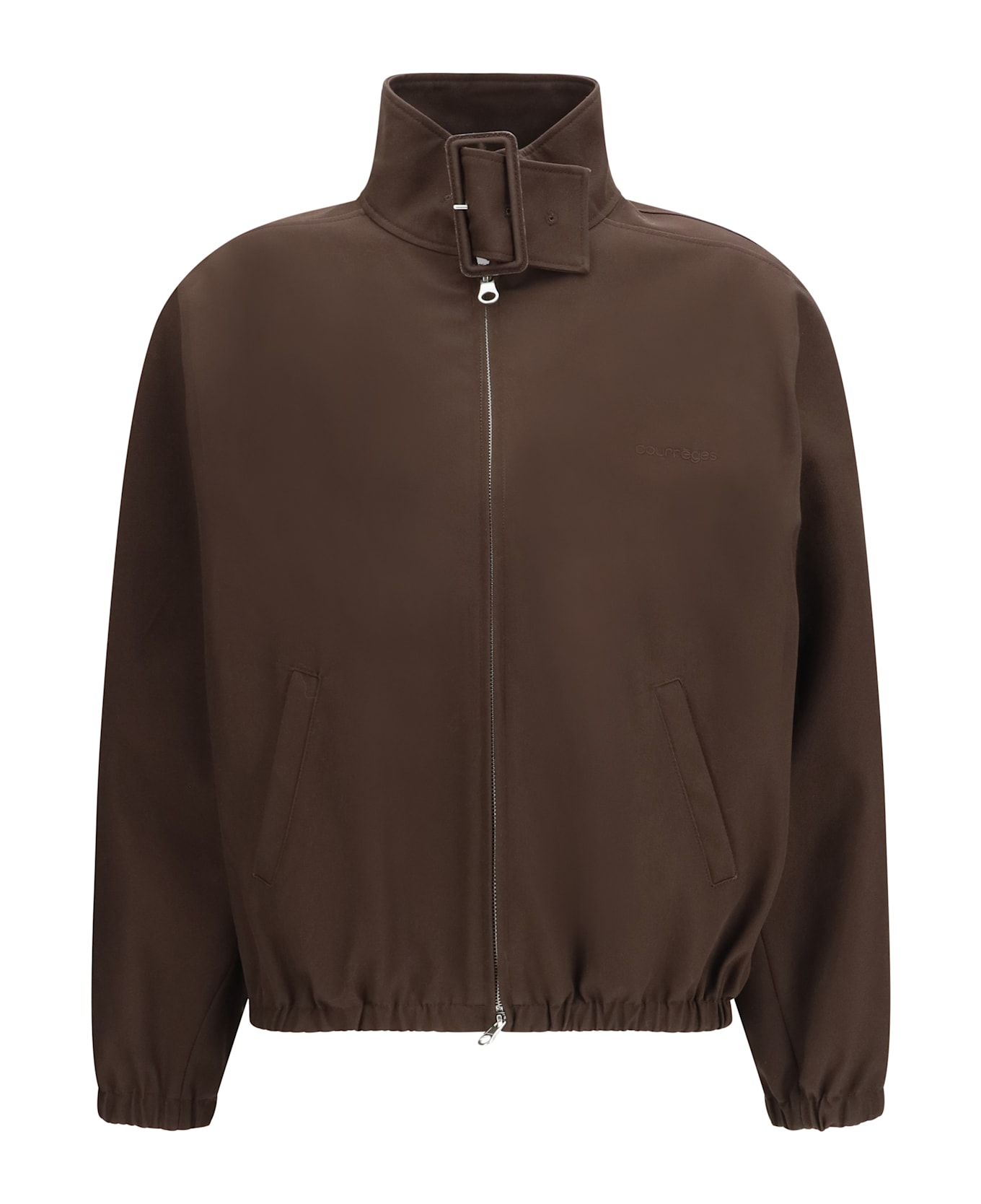 The zip-up bomber jacket by courrèges is an elegant and contemporary outerwear piece, characterized by clean lines and refined design. the front zip closure and high collar with buckle add a distinctive and modern touch, while the embroidered signature on the front adds a discreet luxury detail. perfect for completing sophisticated urban looks, this bomber jacket combines style, functionality, and the unmistakable elegance of courrèges.