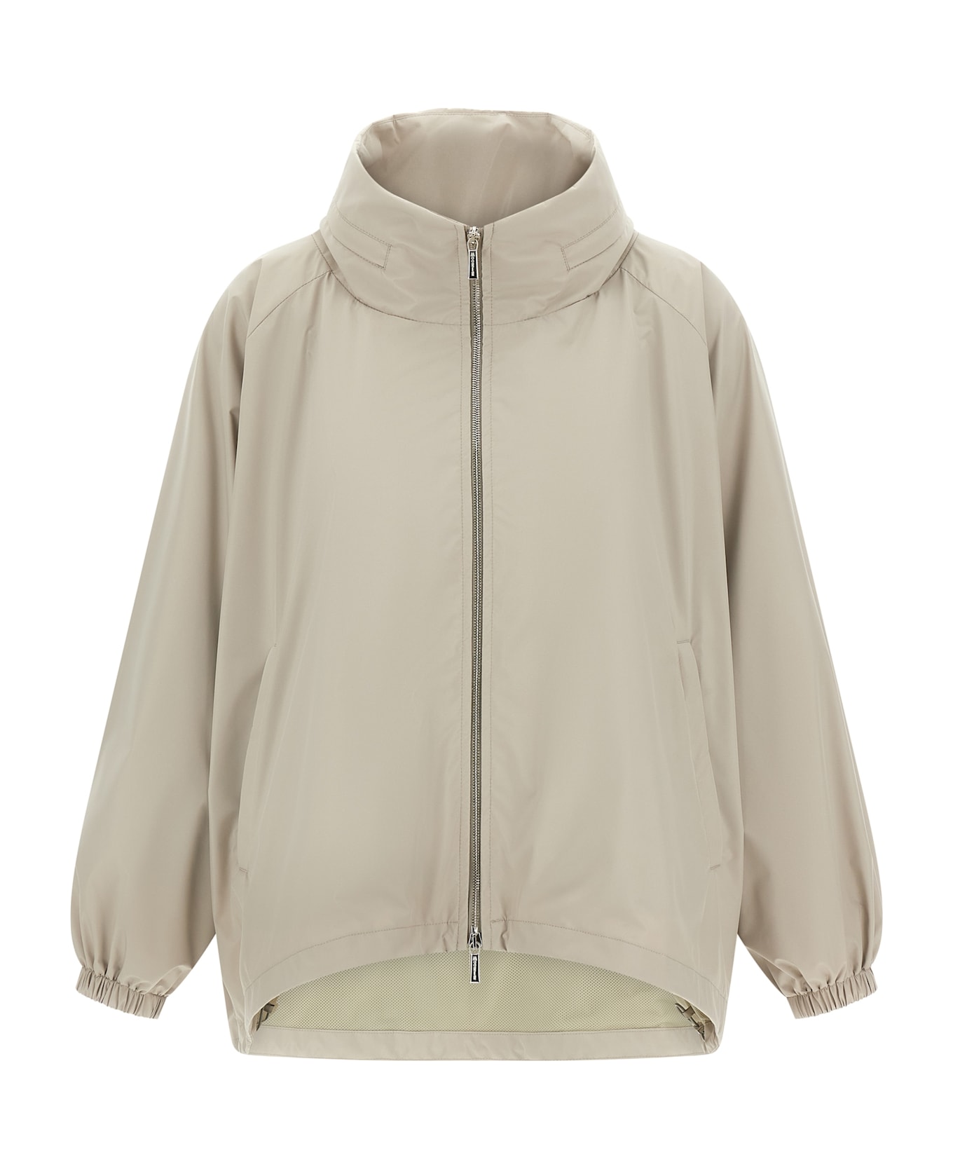 'Lehua' jacket - 'Acqua' line in technical fabric with waterproof membrane, standing collar with removable hood, front zip closure, pockets, long sleeves with elastic cuffs, drawstring on an asymmetrical hem.