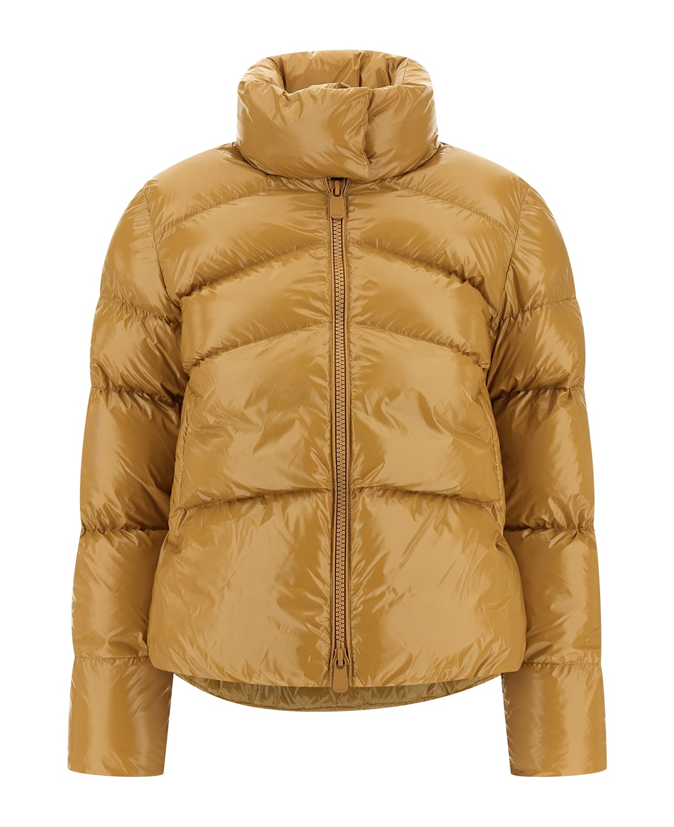 'Mirco' glossy nylon down jacket, high neck, zip closure, pockets, long sleeves with elastic cuffs.