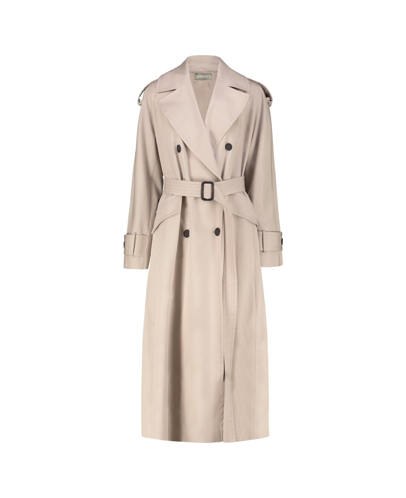 Drhope classic cotton trench coat, belted waist, shoulder epaulettes, relaxed fit, slanted flap pockets, back slit. gtin code: 163795 1