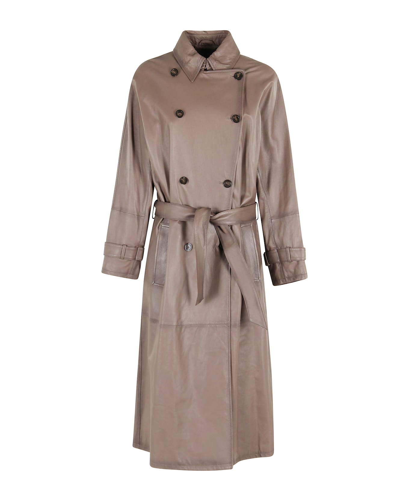 Coat - Emporio Armani - Beige color - Double-breasted button closure - Classic collar - Reglan long sleeves - Strap cuffs - Side pockets - Coordinating removable belt - Back flap.