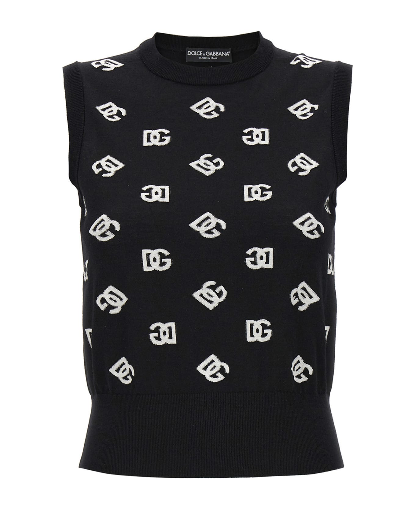 Wool and silk blend vest with all-over jacquard logo. Composition: 81% virgin wool 19% silk