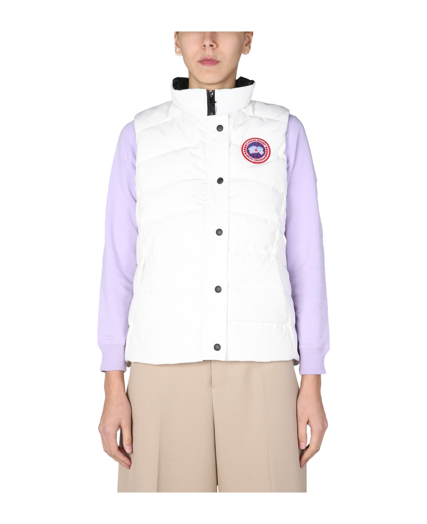 - Front Zip And Snap Buttons Closure- Logo Patch On The Chest- Two Side Pockets With Zip- Lined Inner- Extended Back Hem- 84% Polyester, 16% Cotton / Padding: 80% Down, 20% Goose Down- Made In Canada- Model Is 180 Cm Tall And Wears Size S