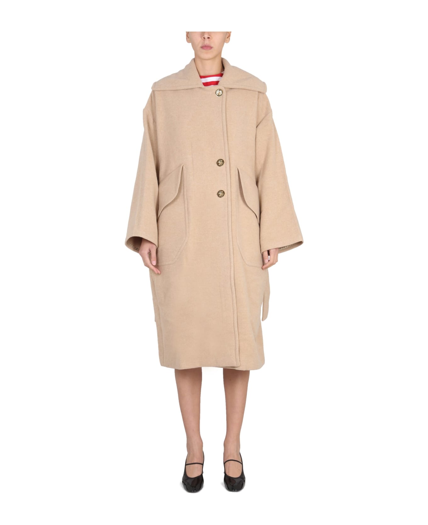 - Front Button Closure- Adjustable And Removable Belt- Sailor Style Collar- Logo Embroidery On The Back- Maxi Flap Pockets- Oversize Fit- 100% Wool- The Model Is 180 Cm Tall And Wears Size 36 Fr