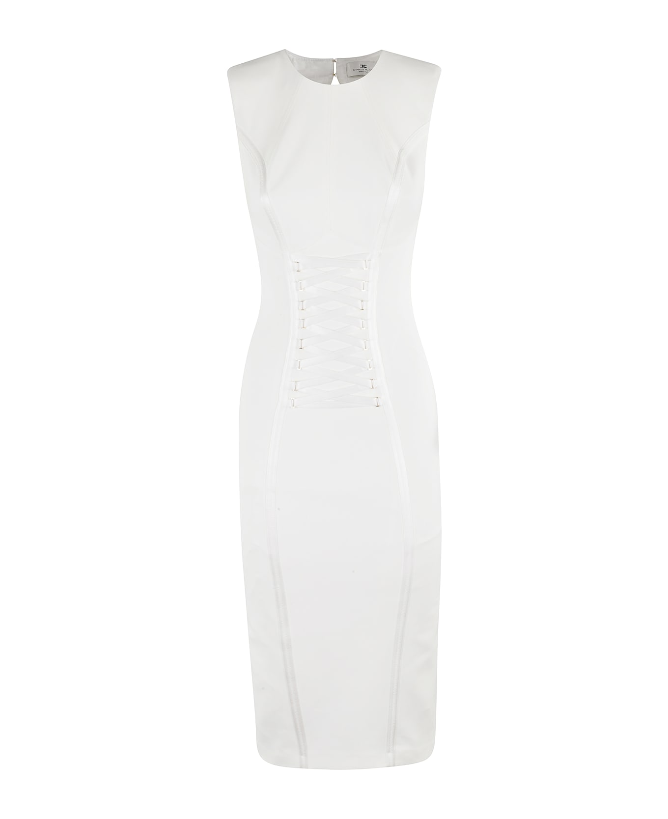 Lacci dress - Elisabetta Franchi - White color - Stretch crepe fabric - Round neck - Sleeveless - Criss-cross front detail - Wide neckline at back - Midi pencil skirt - Fitted fit