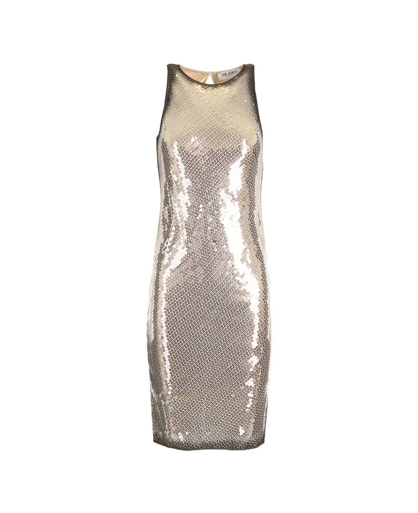 Slim fit mini dress with all over sequins from The Attico, with shaded hems and keyhole closure on the back.