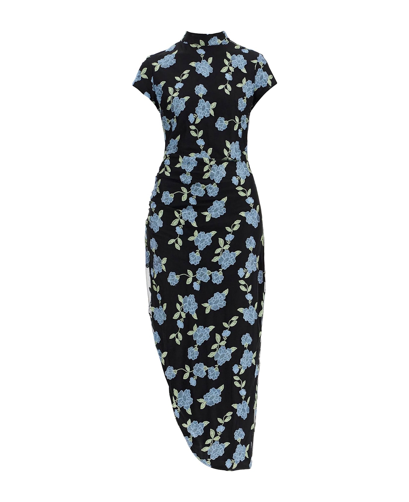 Asymmetrical Floral Mesh Midi Dress