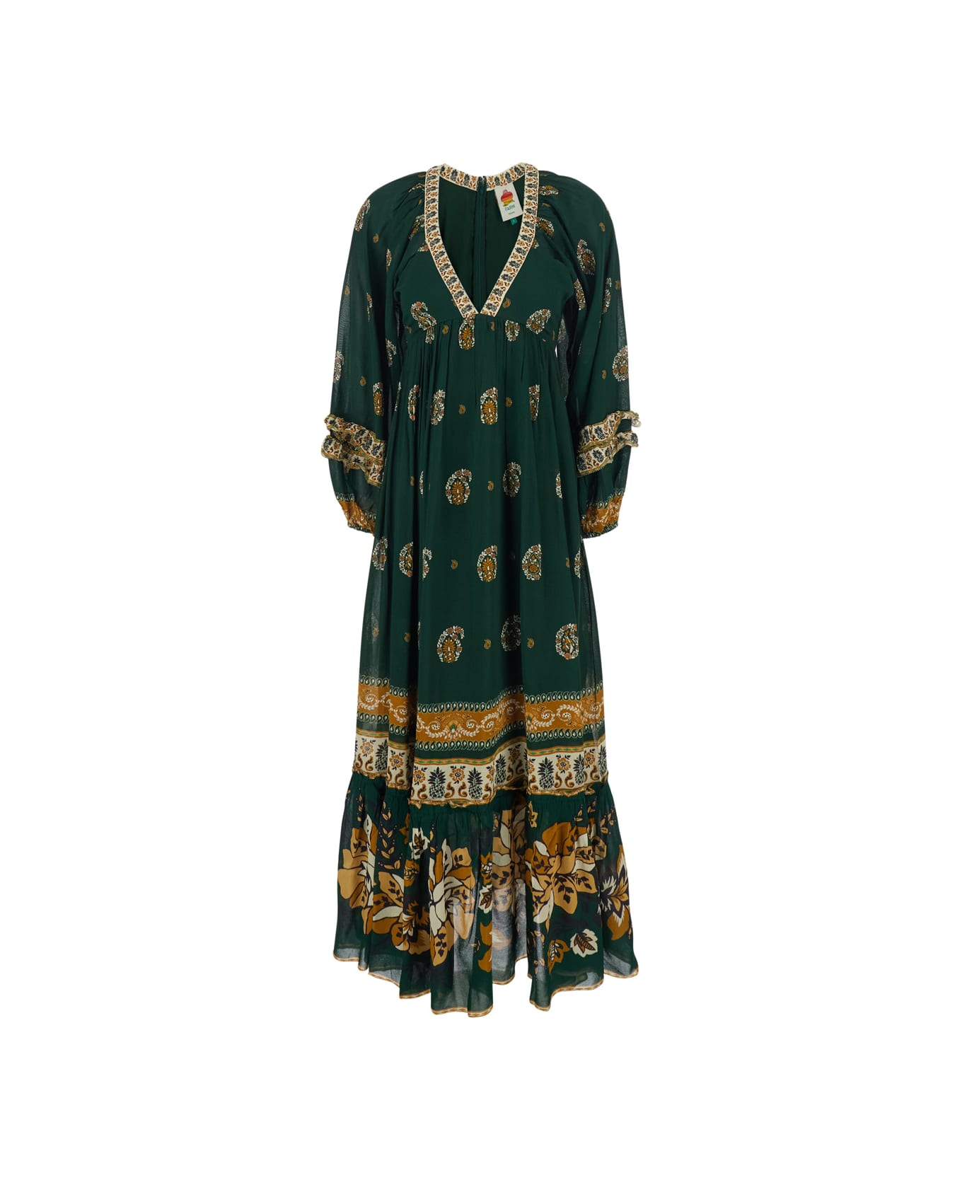 'ayla' Green Maxi Dress With All-over Floral Motif In Viscose Woman