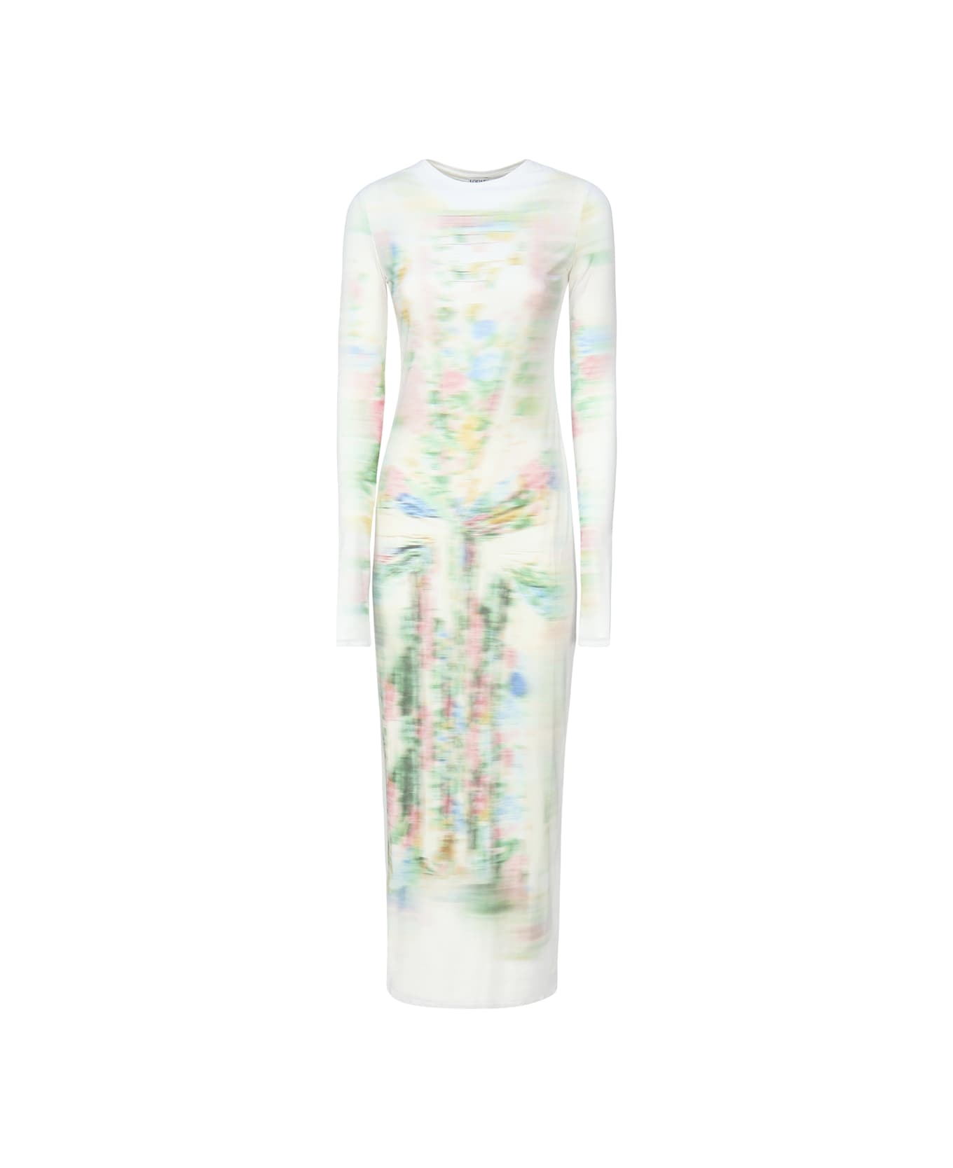 Multicolor Blurred Tube Long Dress In Mesh from Loewe -Second skin silhouette -Long length -Blurred trompe l'oeil placed digital print -Round neck -Ribbed collar -Long sleeves -Stretch jersey lining -Anagram embroidery at the back -Made in Portugal -Colour: Multicolor -100% Mesh