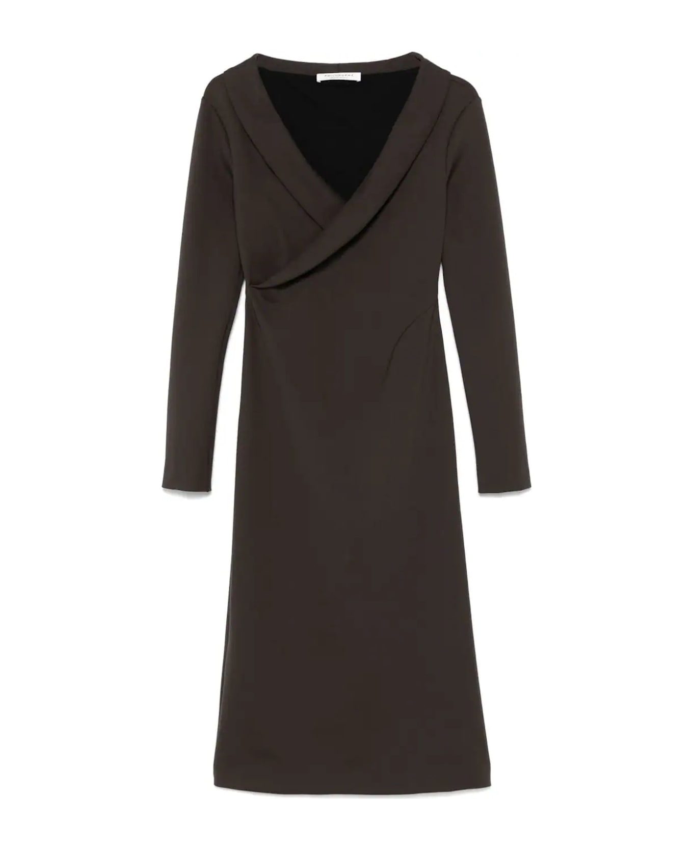 Brown jersey midi dress, stretch-jersey, concealed side zip fastening, V-neck with folded edge, long sleeves, partial lining, straight hem, mid-length Composition: Polyamide, 87% , Elastane, 13%