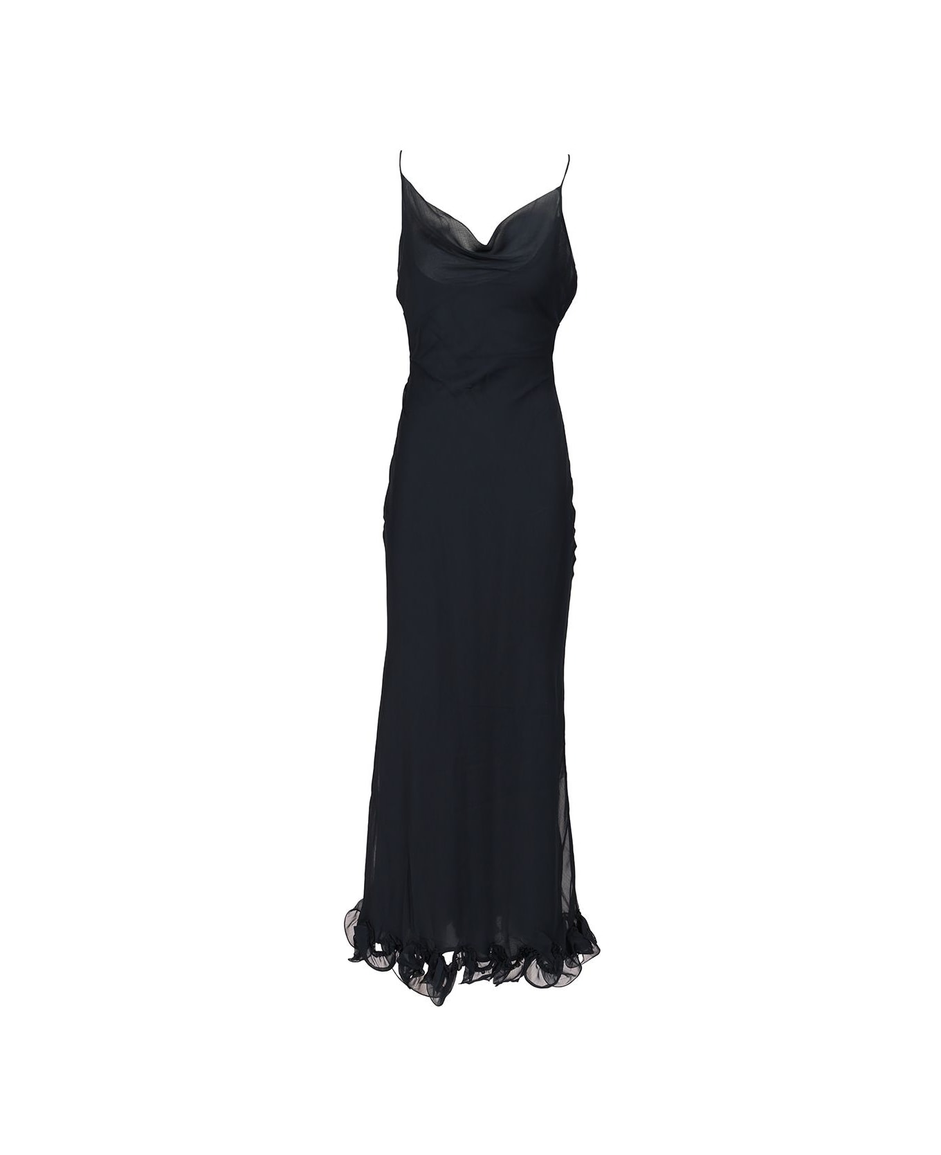 Maxi dress by Rotate in chiffon featuring thin straps that tie at the back and ruffle detailing at the hem