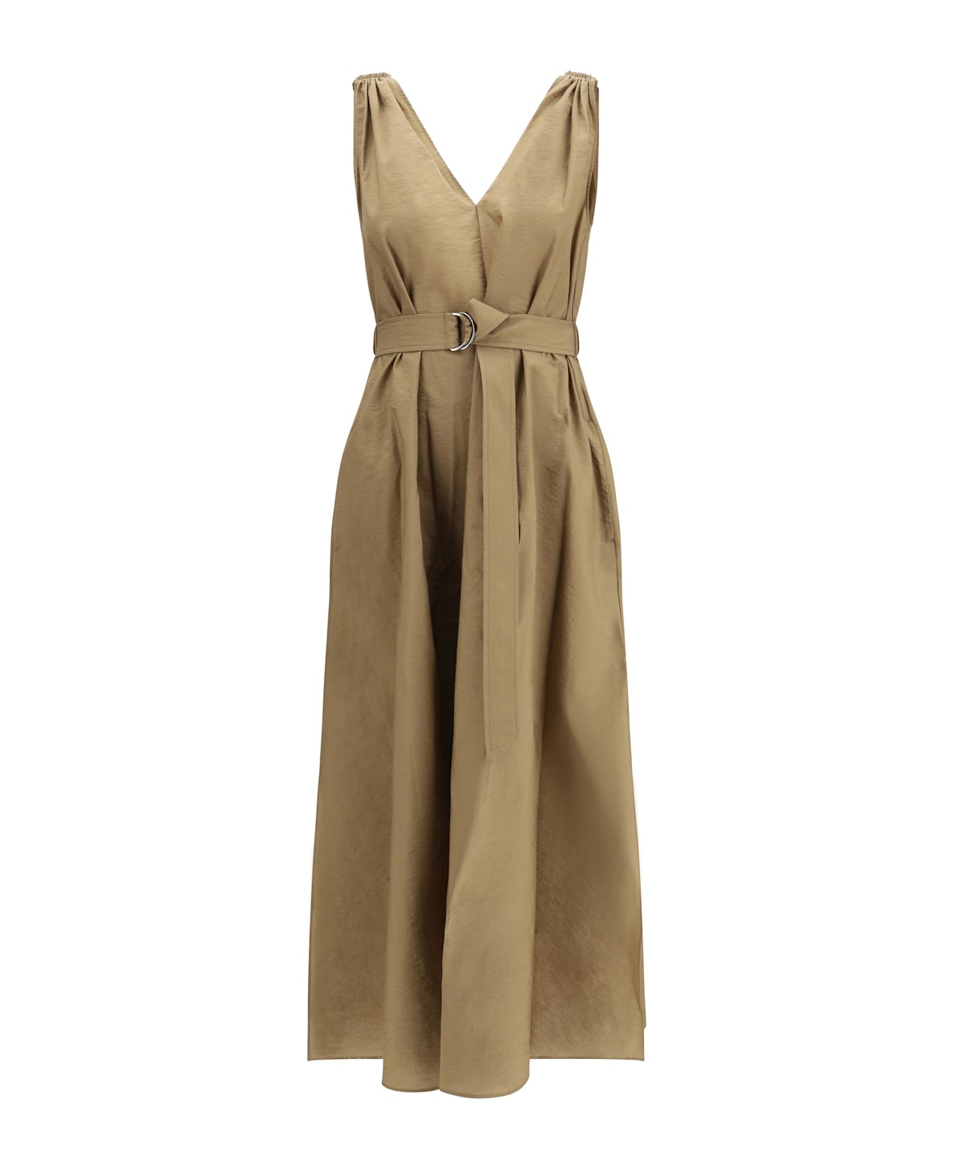 The cotton poplin dress by brunello cucinelli is a sophisticated and elegant garment, characterized by a modern design and high-class details. the v-neck and low pockets give it a simple yet refined look, while the non-removable drawstring belt and elasticated waistband emphasize the silhouette. a distinctive detail of the suit is the nickel-free metal decoration, which adds a touch of luxury without compromising on comfort. perfect for those looking for a versatile suit that combines contemporary style and high-quality materials.