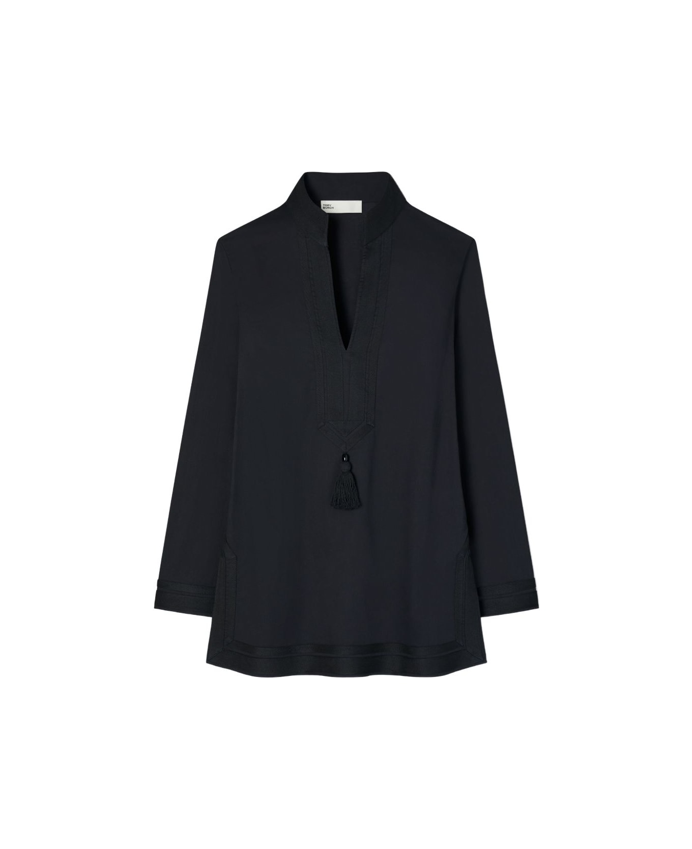 A brand signature. One of the first silhouettes we ever designed, inspired by Tory's travels. In lightweight cotton voile, the tassel tunic is trimmed with herringbone twill at the collar, cuffs and hem. Universally flattering in a relaxed cut, it's the epitome of understated glamour. model is 5'10" (178 cm) and is wearing a US size S 100% cotton length: 31" (81 cm) hand wash or dry clean coverups style number 83308