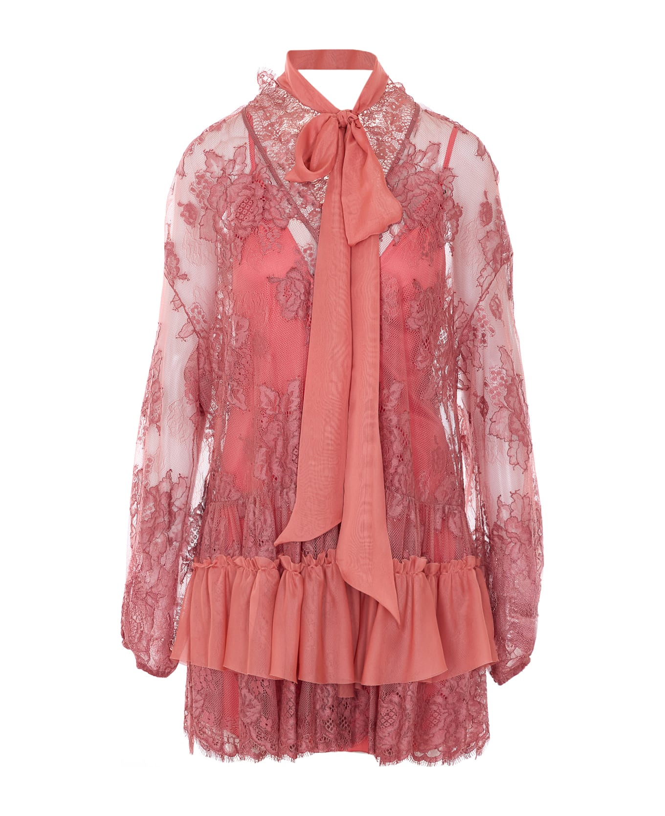 Aniye By deep ribbpm Dream lace dress, v-neck, long sleeves, rouches at bottom, petticoat Composition: 40% Polyamide, 26% Modal, 25% Viscose, 9% Cotton, 100% Polyester, 100% Polyester