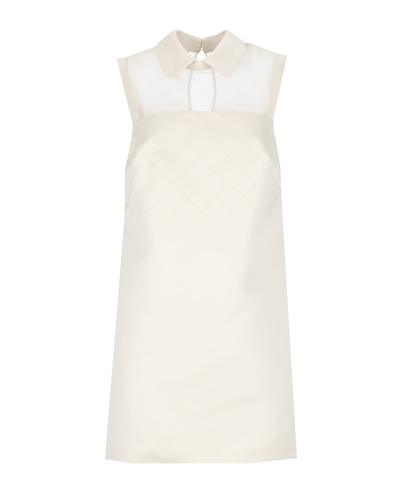 - Ivory Elisabetta Franchi dress for woman - Collar - Upper tulle details - Sleeveless - Rear zip fastening - Front strass details