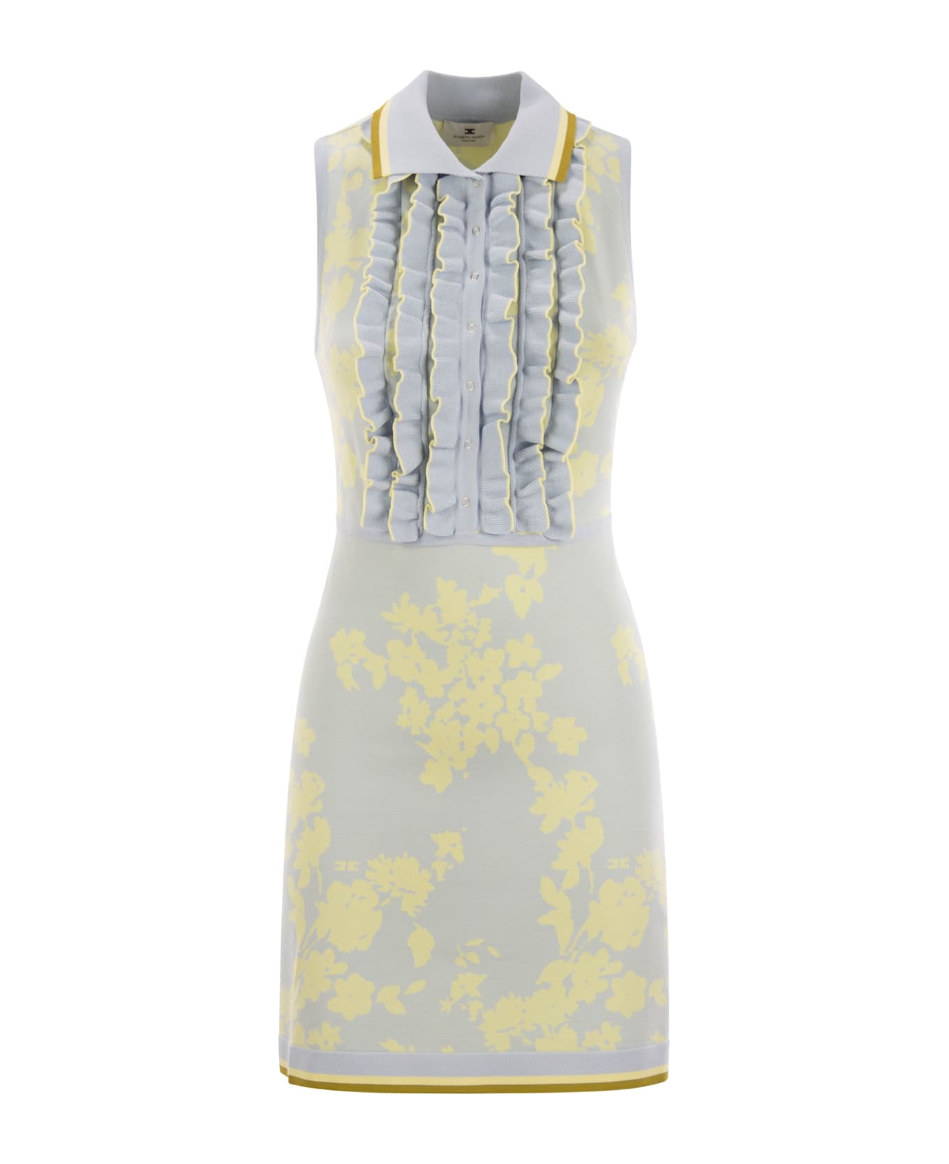 Sleeveless jacquard dress with polo neck and flared mini skirt. The floral motif decorates the entire length, the ruffles add movement. - Tight fit - Matching ruffles and buttons - Zip at hip DESIGNER ID: AM44Q51E2 DL5