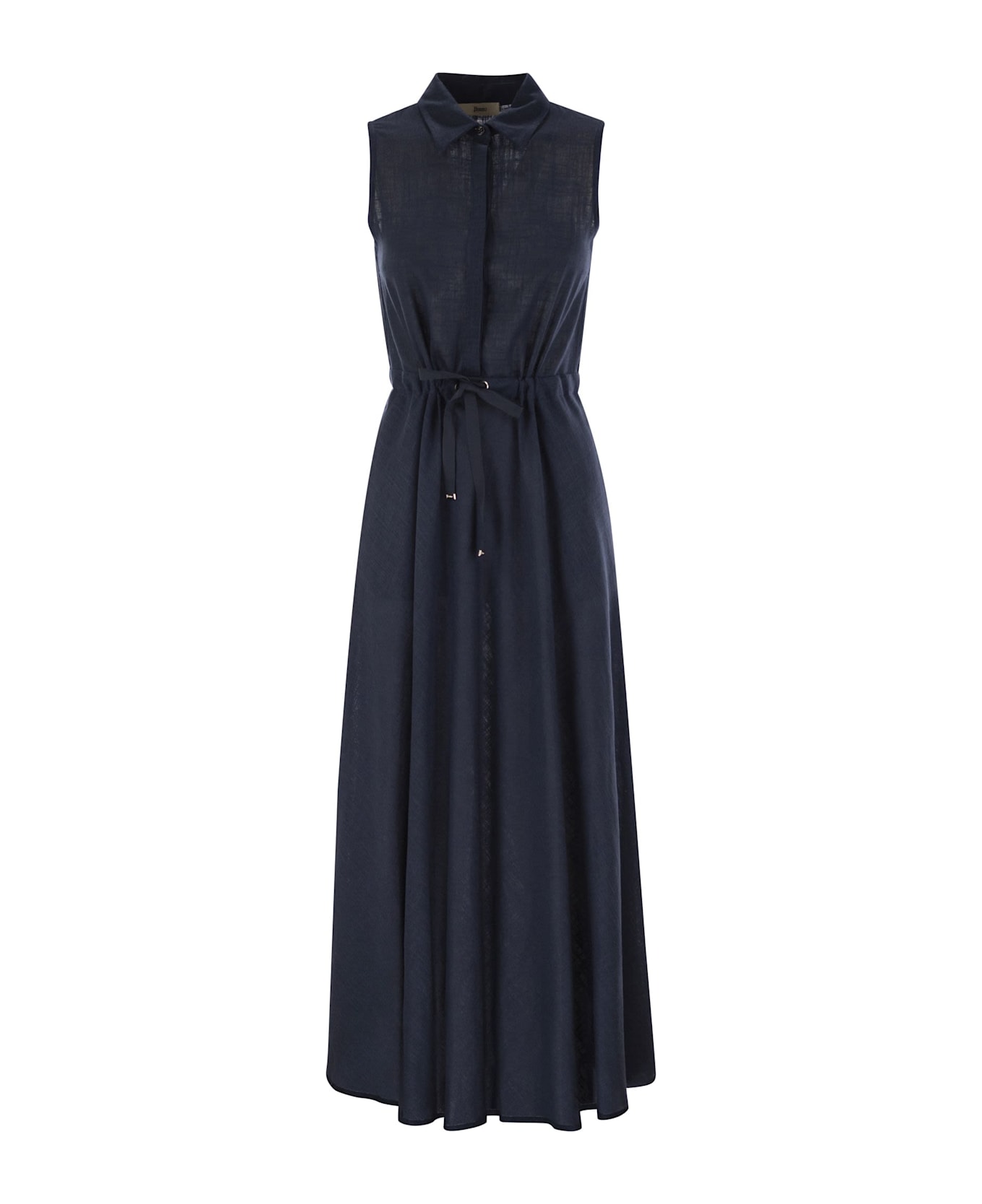 Linen-blend gauze dress with a light and fluid weave, ideal for the warmer season. The model has a sophisticated line with a collar, a soft skirt that delicately follows the movements and a grosgrain drawstring to modulate the fit. - Regular fit - Shirt collar - Grosgrain drawstring at the waist - Hip pockets - Covered button closure DESIGNER ID: AB000028D12689 9210