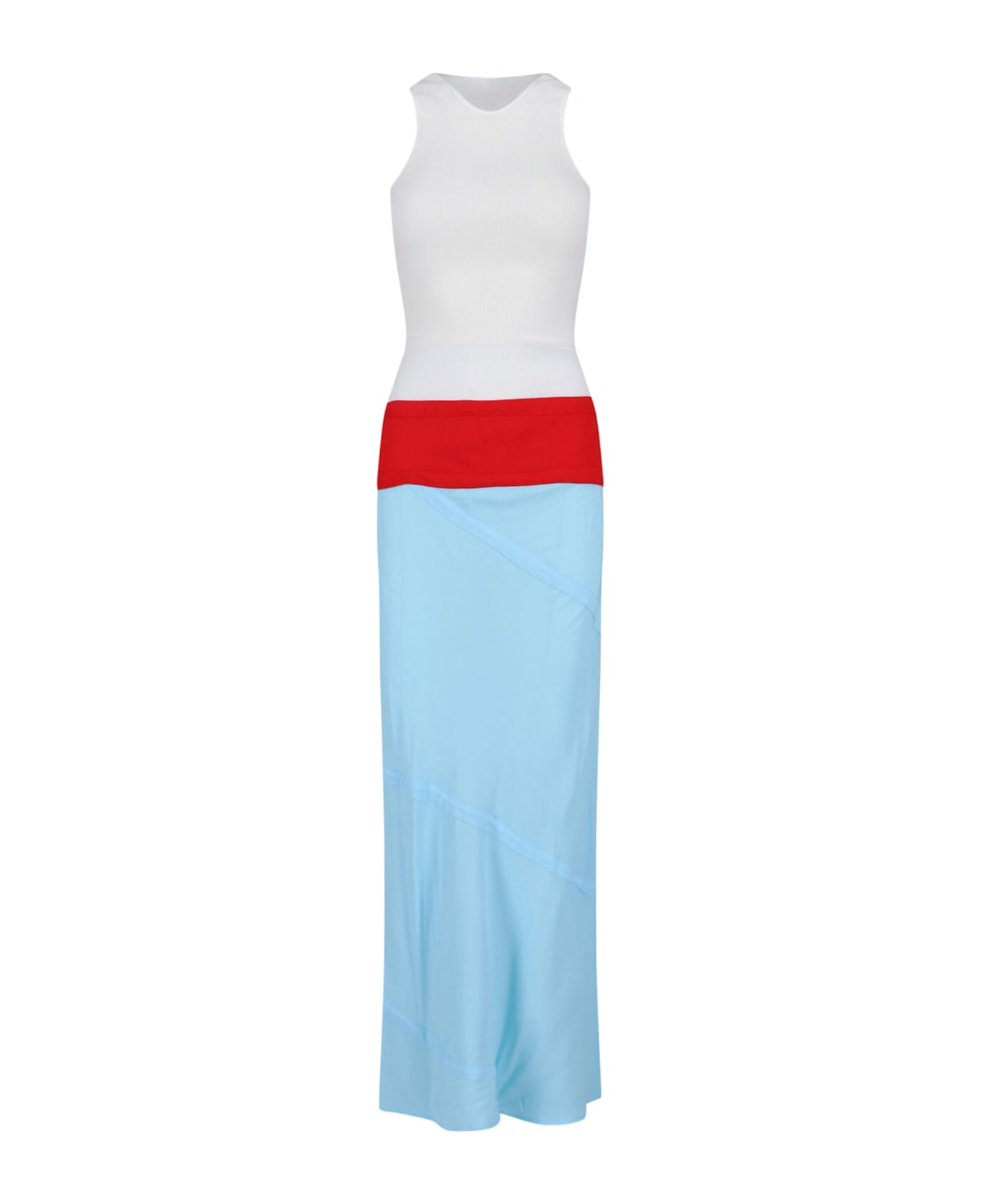 Maxi dress "Amelia" Gimaguas in multicolor viscose, round neck, sleeveless, banded design, straight hem.