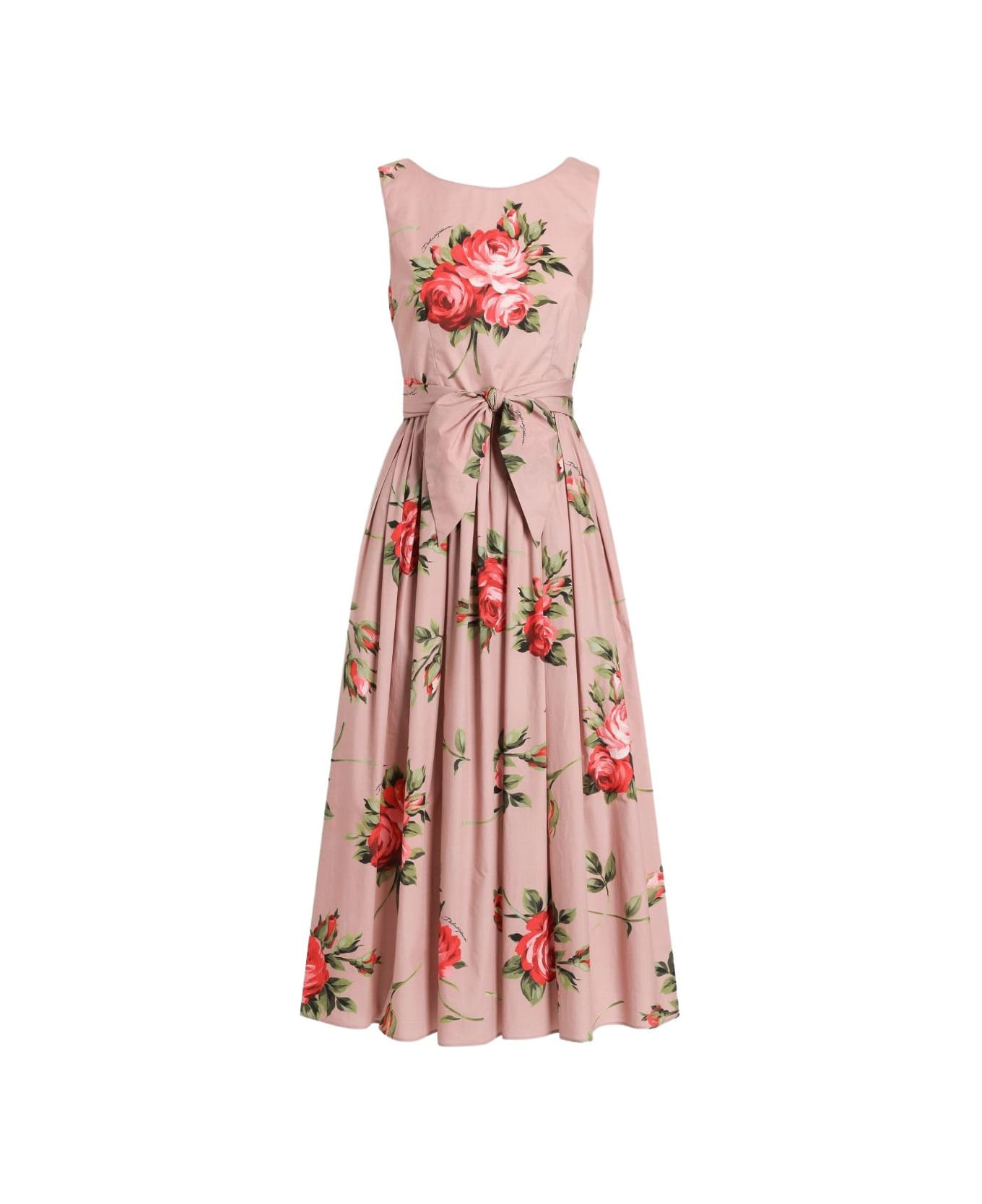 rose bouquet print tie detail sleeveless round neck gathered detail zip fastening Composition: Elastane, 3% Cotton, 97% Cotton, 100%