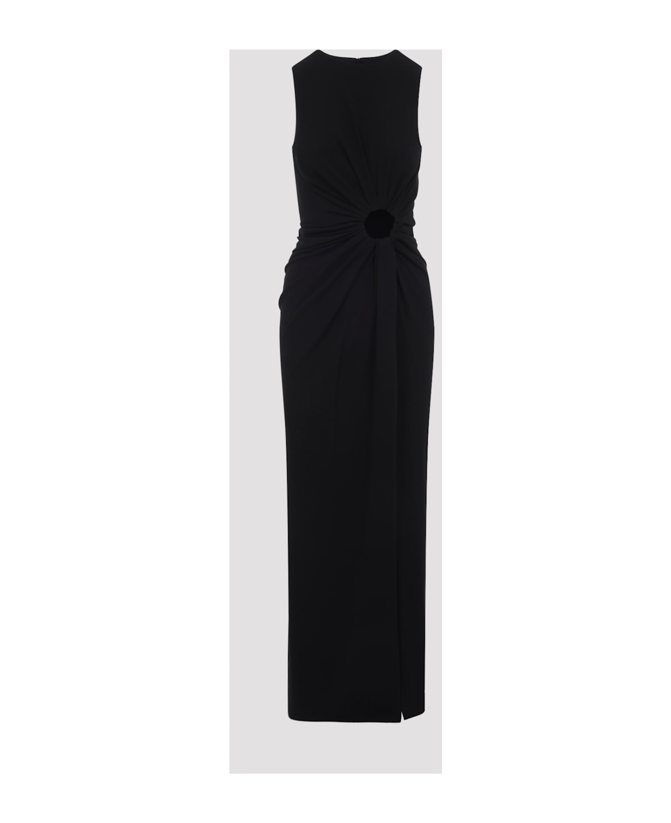 Sportmax Saletta Black Viscose Long Dress. Crafted from black stretch viscose, featuring a round neckline, a sleeveless construction, a front cut-out with gathered detail, a back concealed zip fastening, a front side dart, and a long straight skirt.