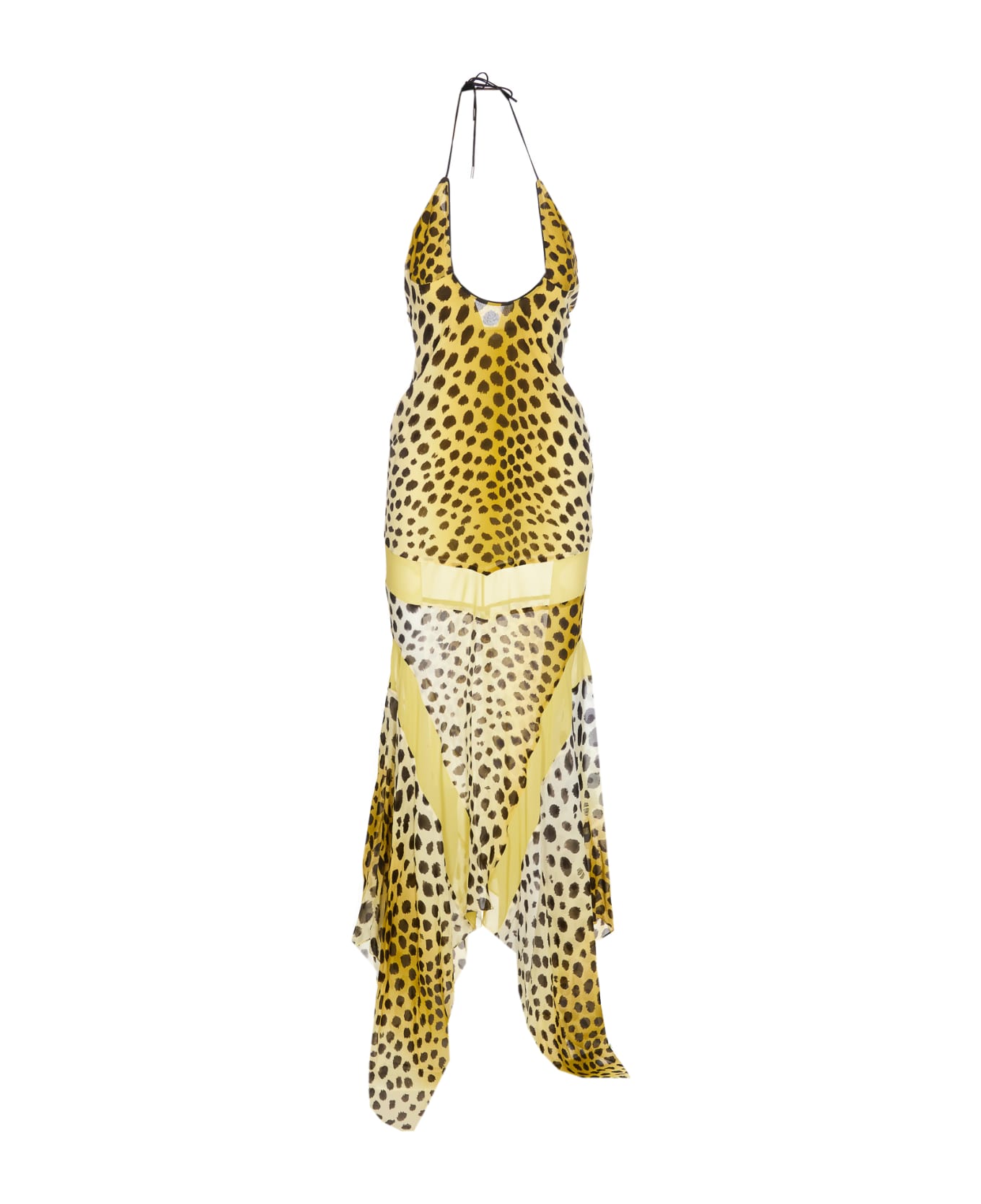 The Attico light yellow Saskia midi dress, halterneck closure, asymmetric skirt, leo print Composition: 100% Viscose, 100% Polyester