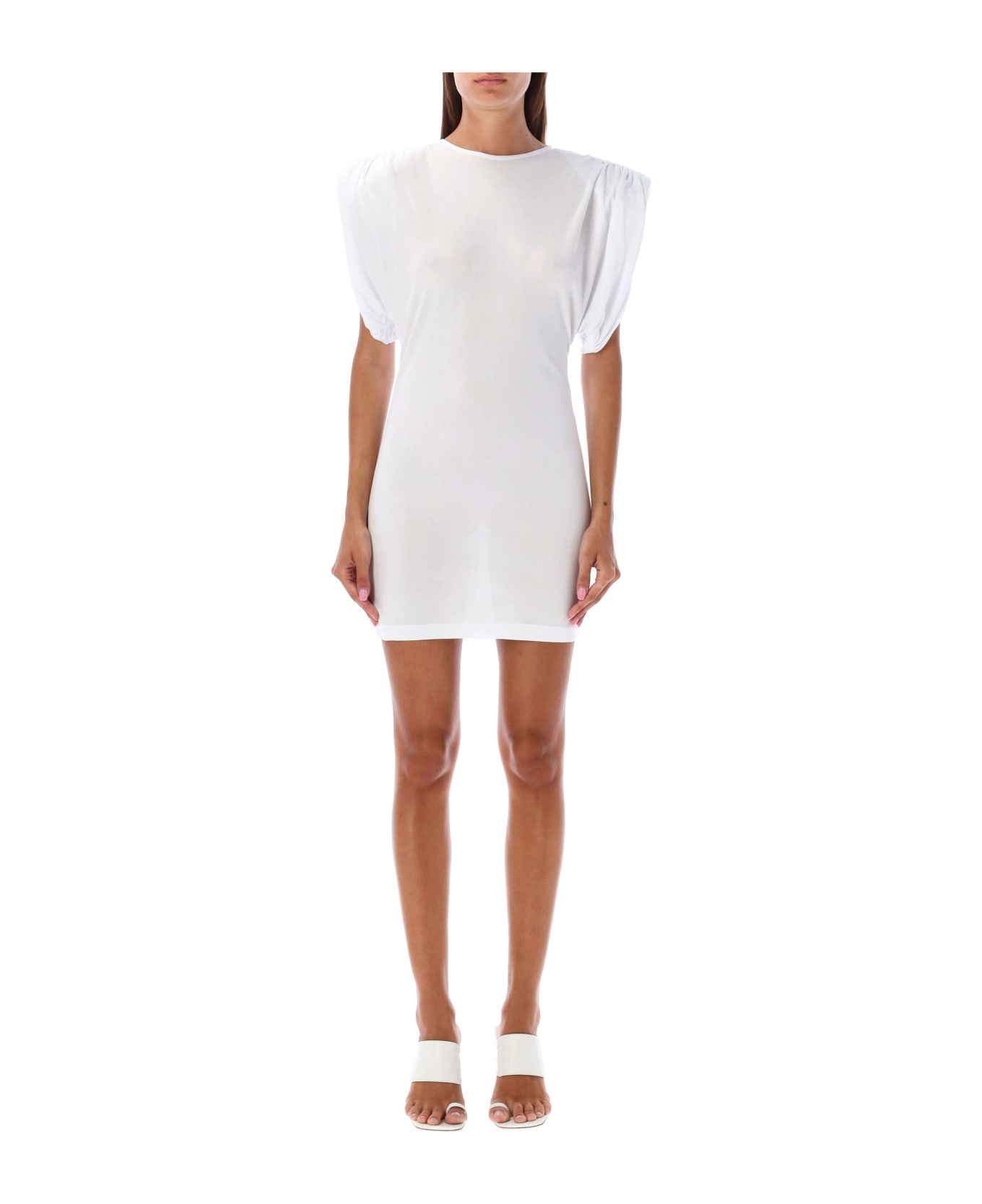 Sheath Mini Dress By Wardrobe Nyc. Featuring: Statement Shoulder Gathered Sleeves Shaped At Waist Model Is 1,72 M Tall And He Is Wearing Size S