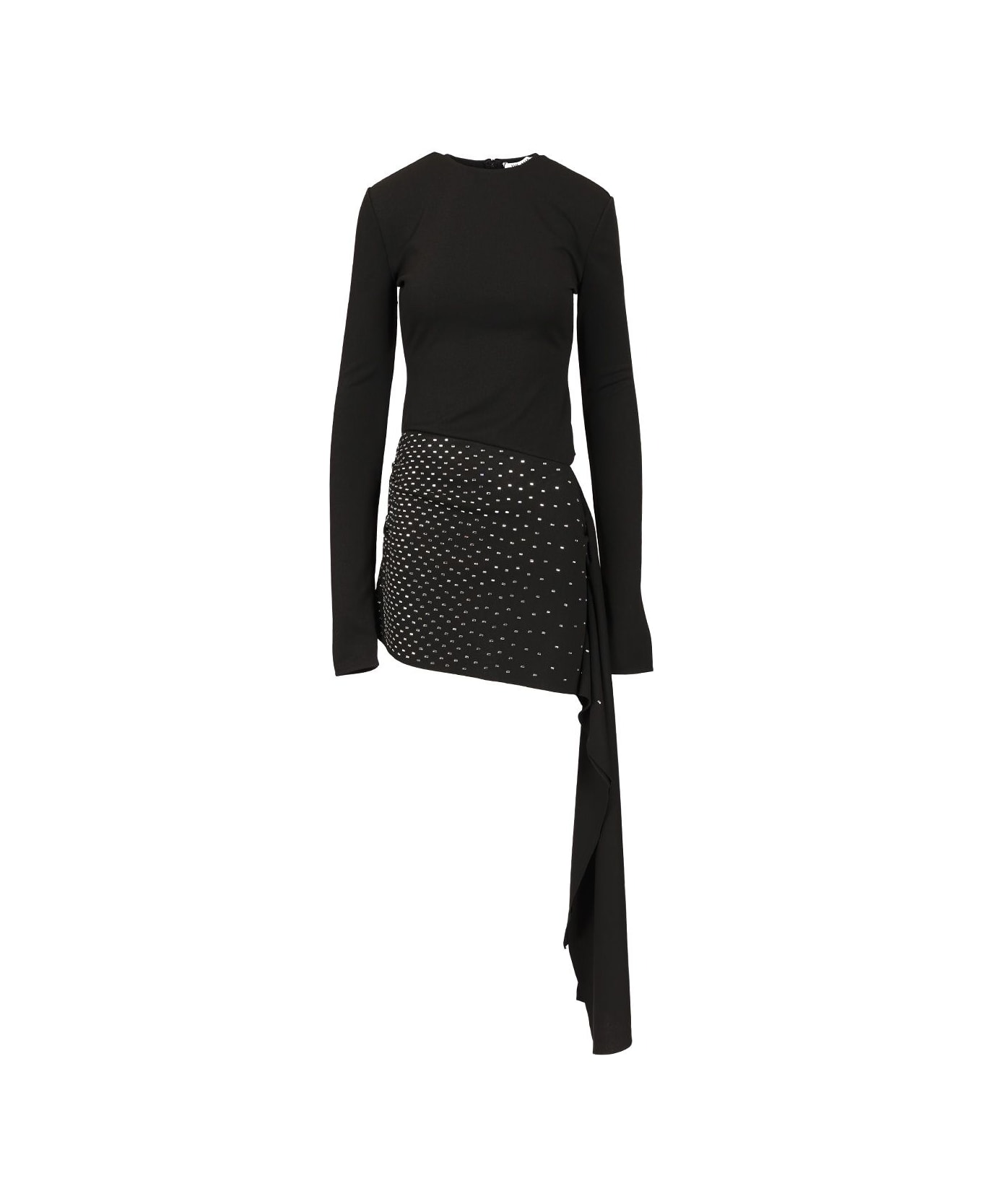 Short dress by The Attico with long-sleeved body and asymmetrical handkerchief skirt in degrade thermostrass sablé. Composition: Main Material: 100% PL; Strass: 100% Glass