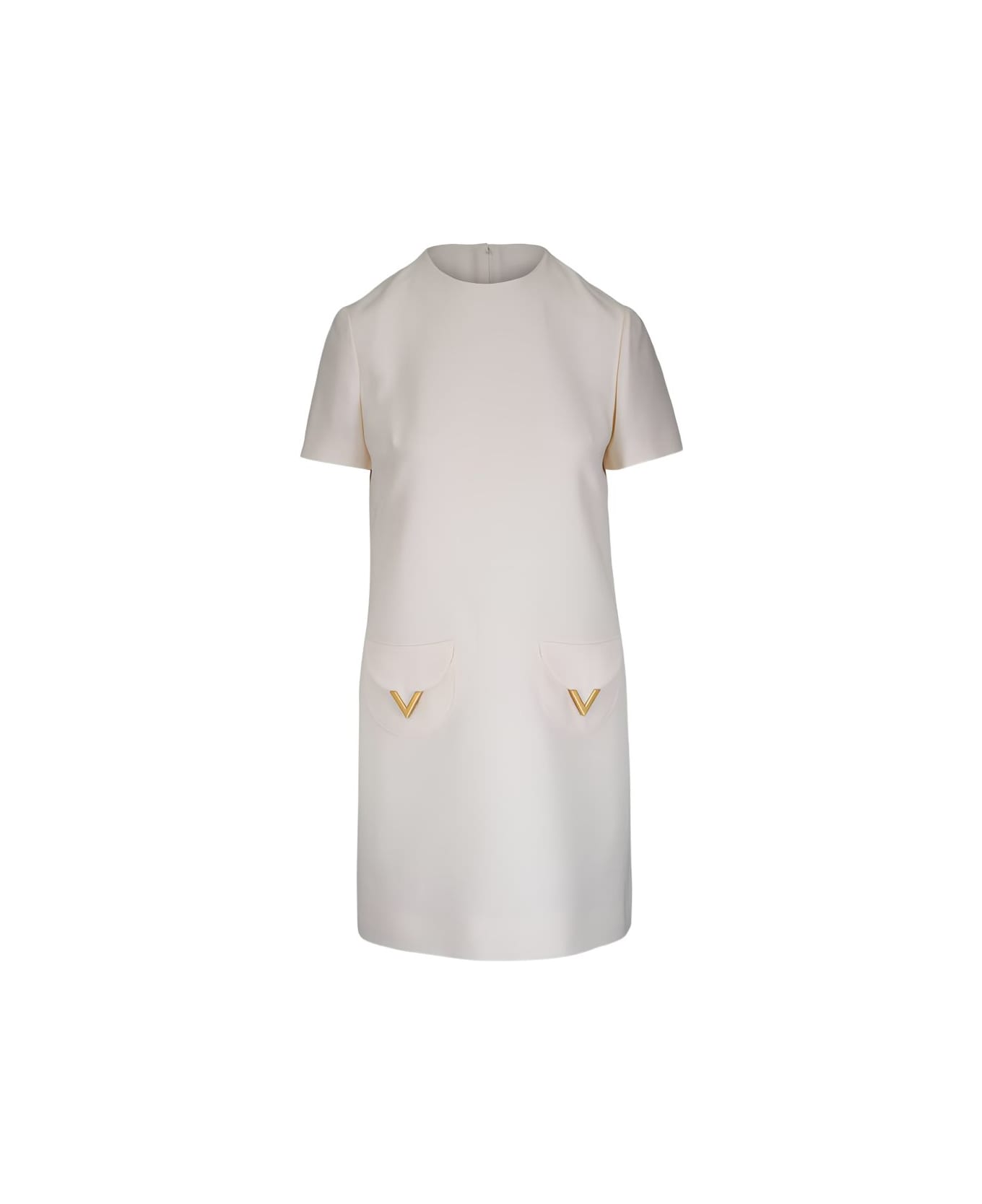 ivory white patch pockets gold-tone hardware short sleeves round neck rear zip fastening Composition: Silk, 35% Virgin Wool, 65%