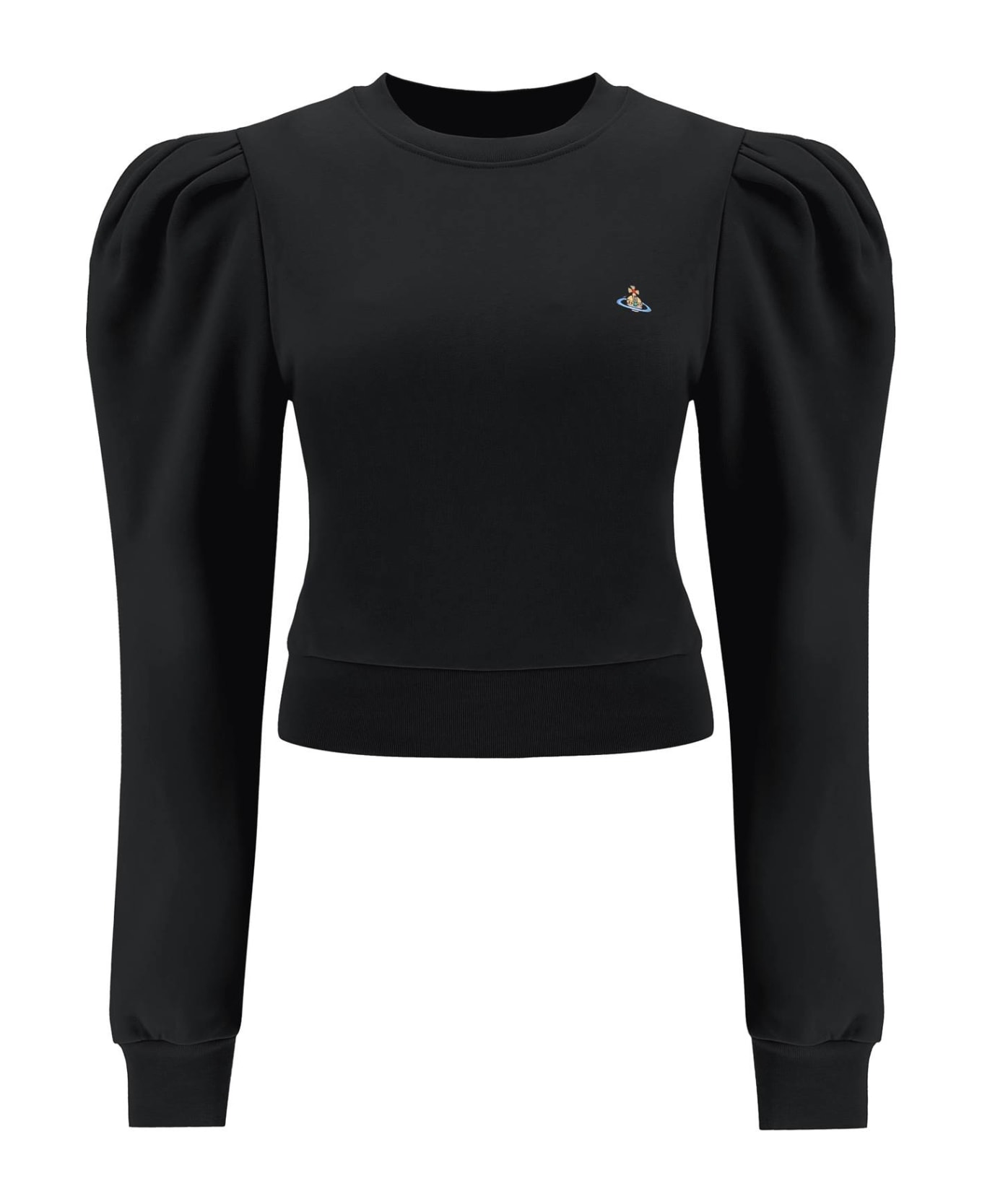 Crew-neck sweatshirt by Vivienne Westwood made of un-brushed organic cotton jersey, characterized by puff sleeves, contrasting Orb-logo embroidery at chest and a cropped cut. The model is 177 cm tall and wears a size XS. Composition: 100% ORGANIC CO